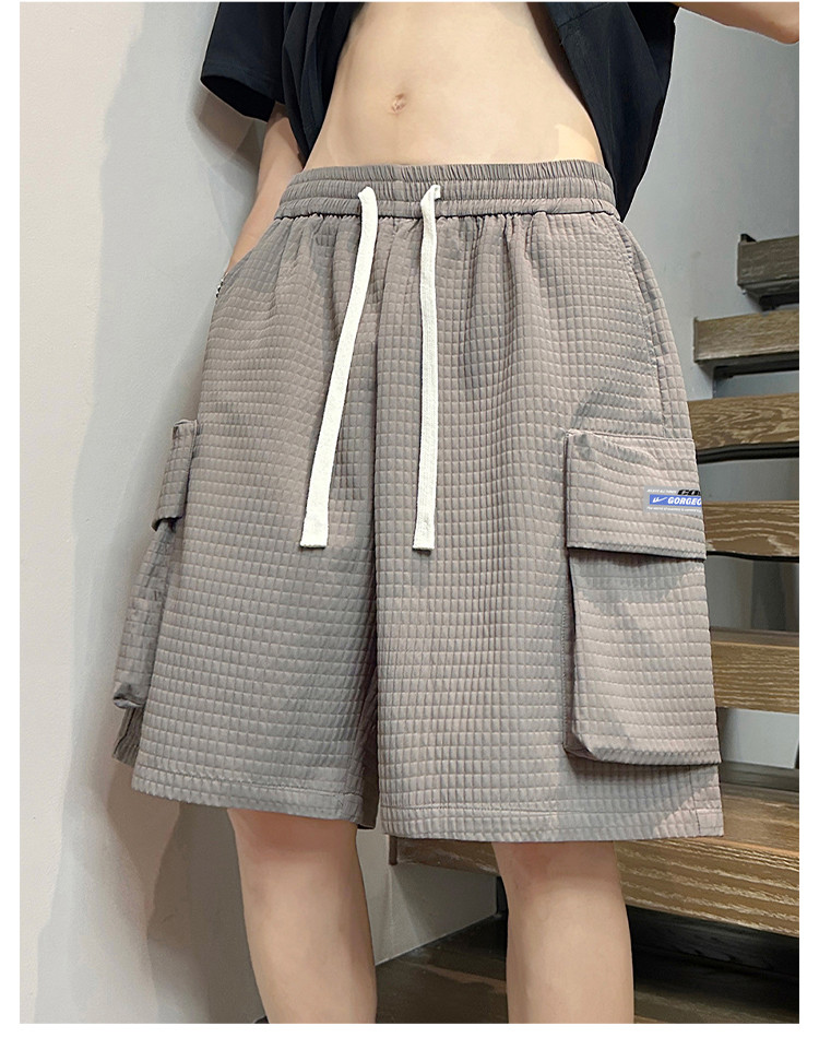 华夫格短裤流行款潮牌夏季五分裤青少年款简约薄款运动裤 081683