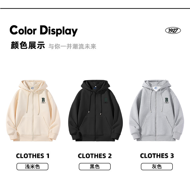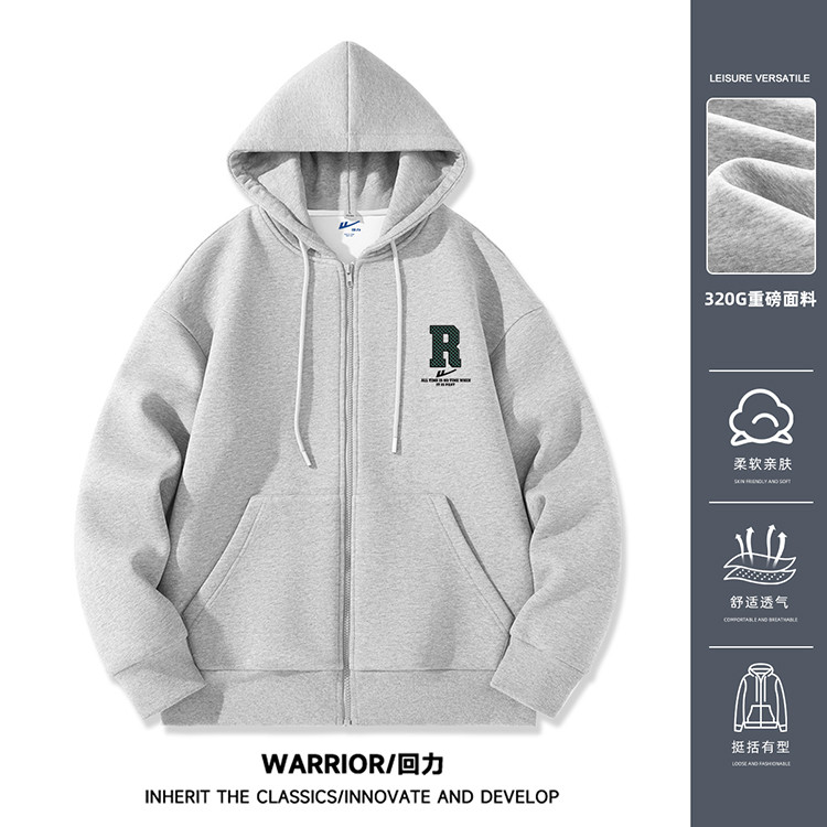 商品名称:【320克精梳棉】春秋重磅棉连帽开衫卫衣男士运动外套男士上衣 045715
