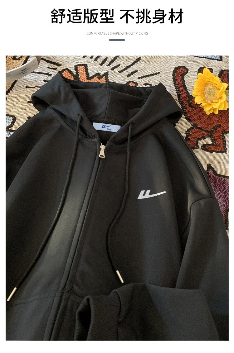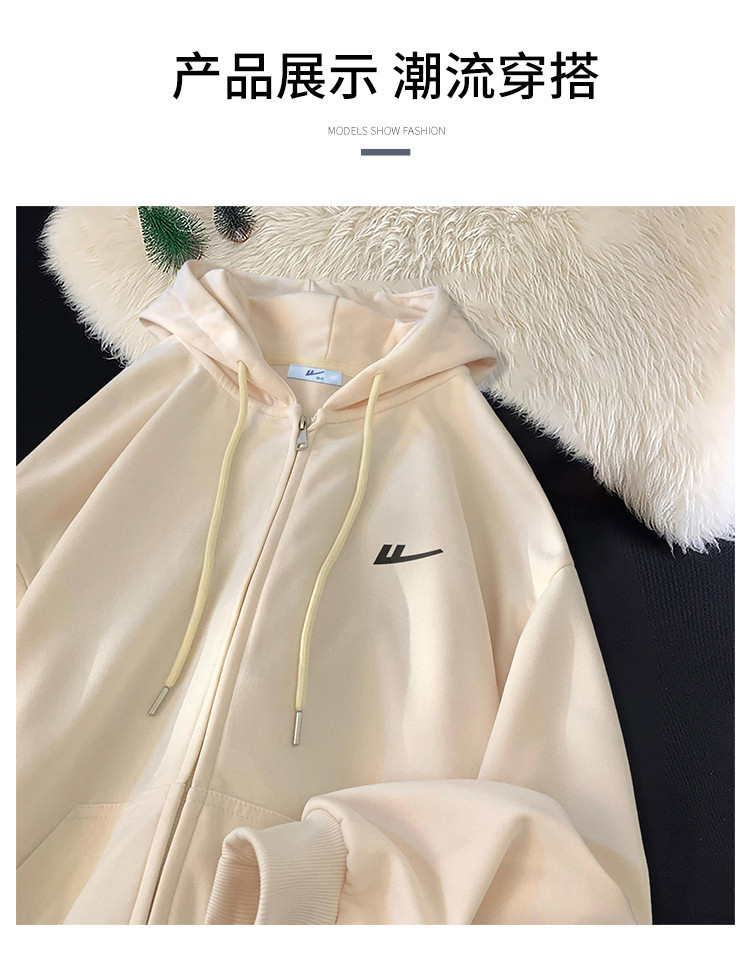 商品名称:开衫卫衣男士春秋季拉链连帽外套男女同款青少年宽松休闲运动服 139475