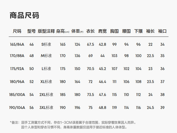 | 尺码 | 衣长(cm) | 肩宽(cm) | 腰围(cm) | 袖长(cm) | 胸围(cm) | 下摆围(cm) | 号型 |