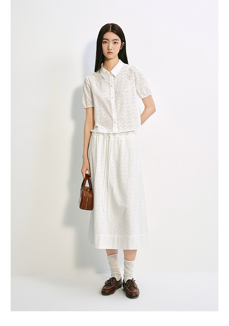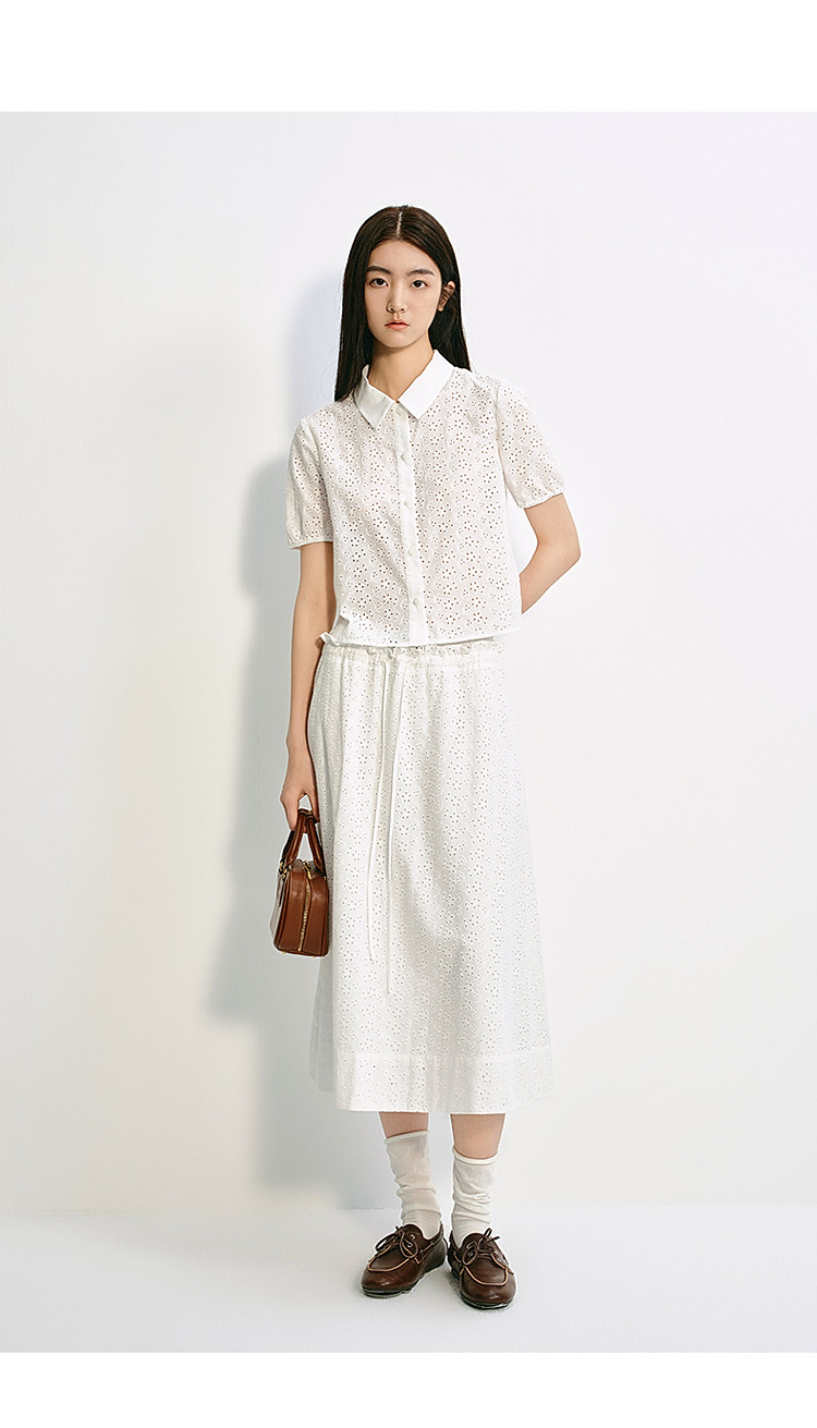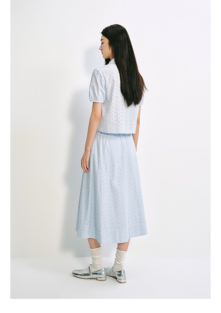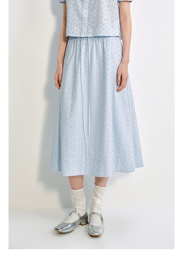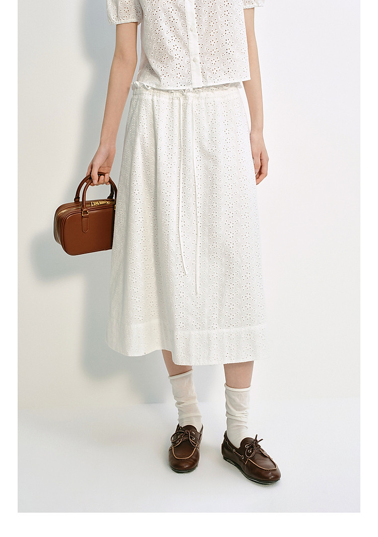 限定系列OCH.夏装 中长镂空绣花A字100%棉高腰半身裙 677327