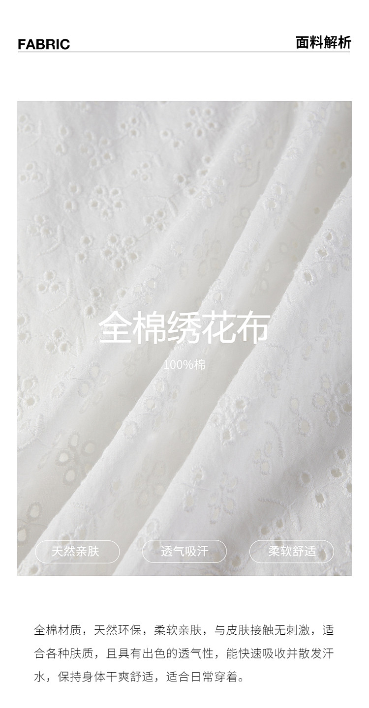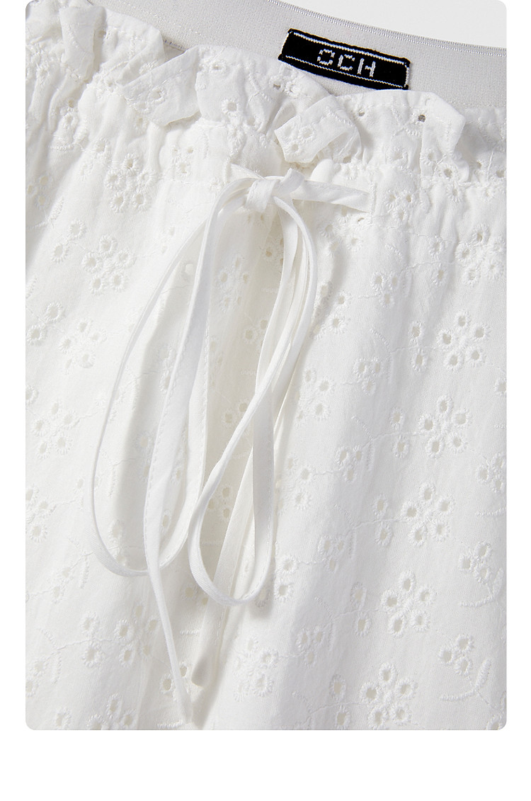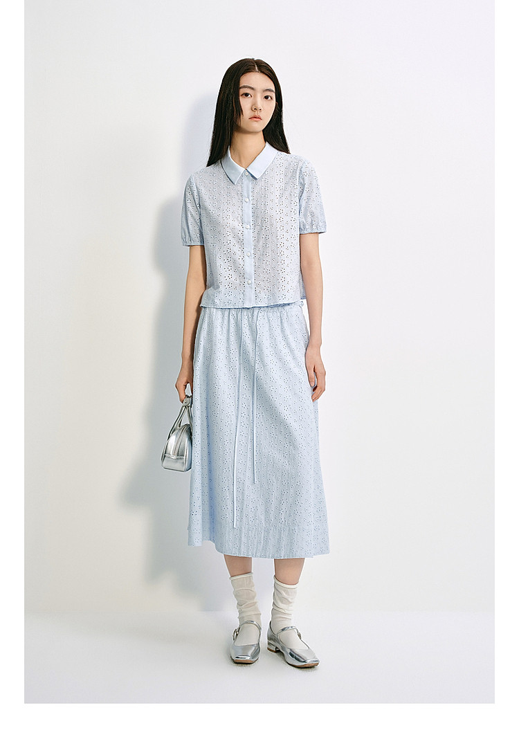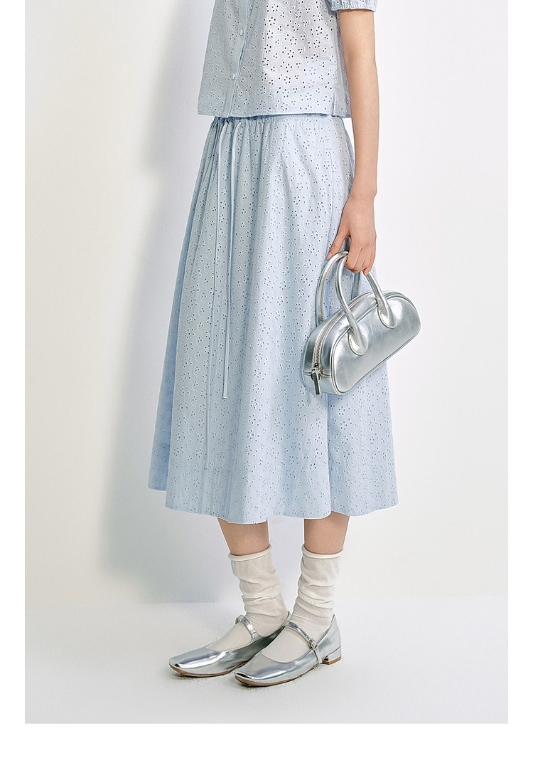 限定系列OCH.夏装 中长镂空绣花A字100%棉高腰半身裙 677327