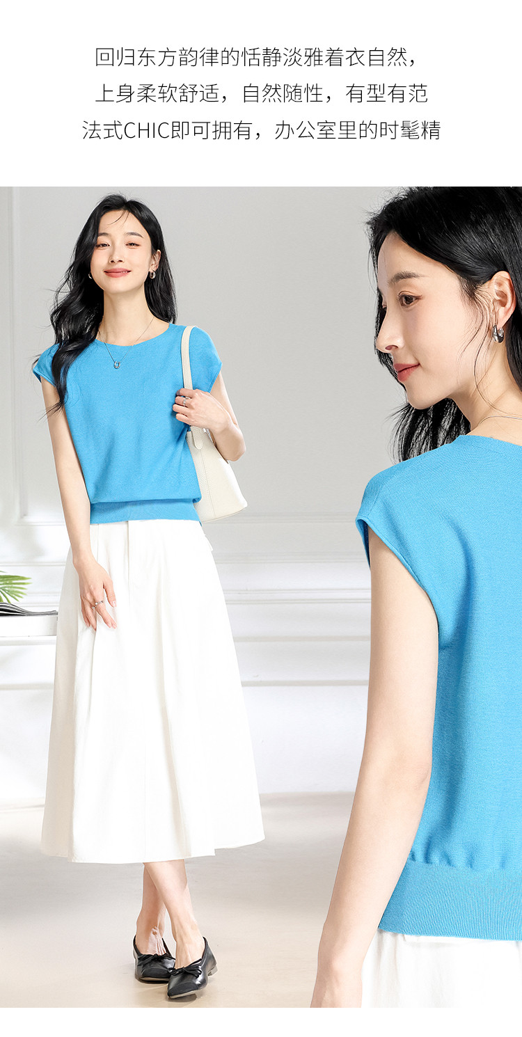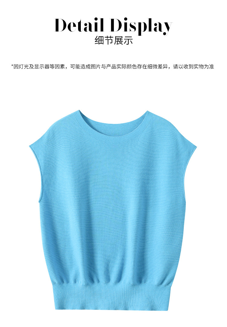 商品名称:圆领纯色简约桑蚕丝T恤女时尚舒适无袖夏季薄款针织衫小衫 441619