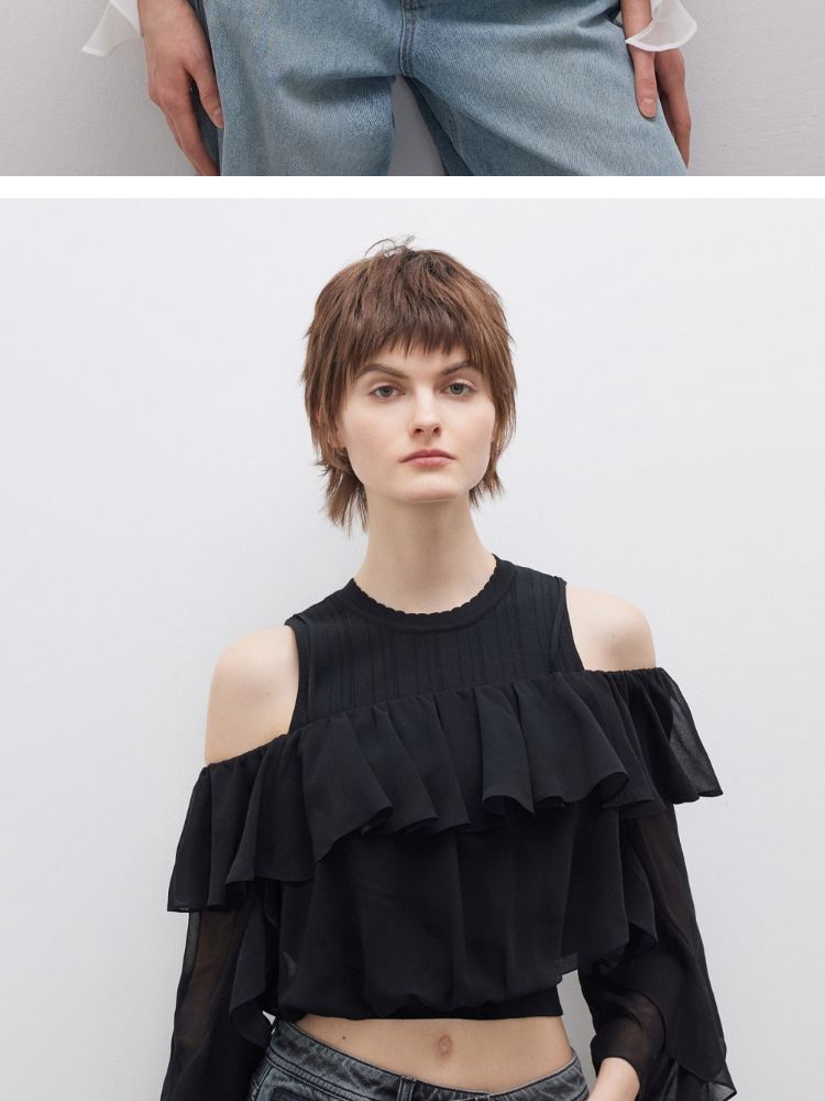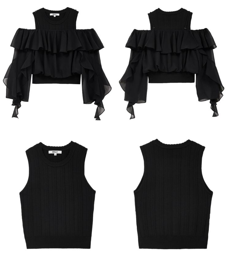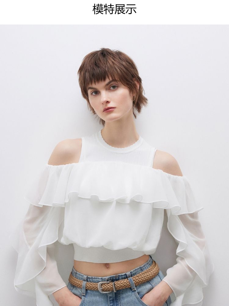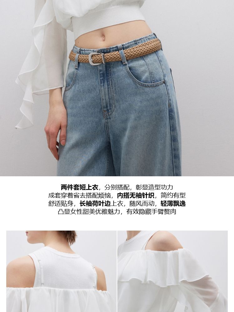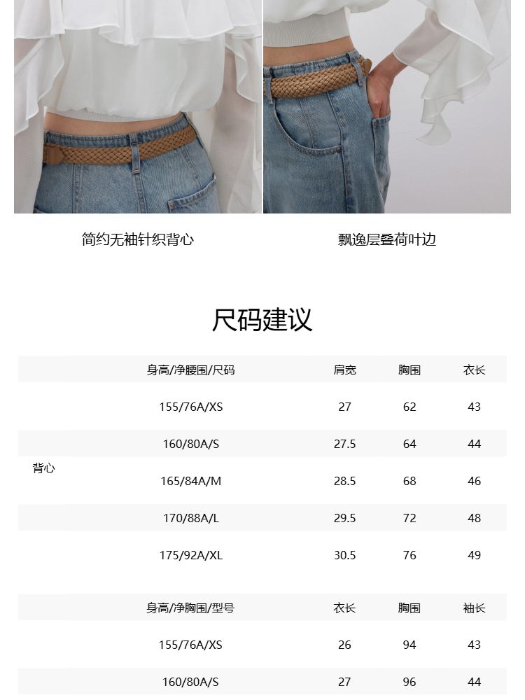 商品名称:【荷叶边套装】2025春季简约针织背心蕾丝衫女 305114