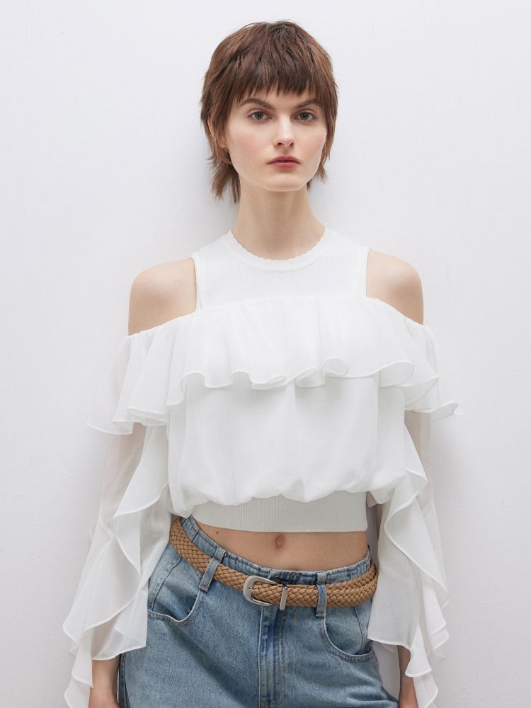 【荷叶边套装】2025春季简约针织背心蕾丝衫女 305114