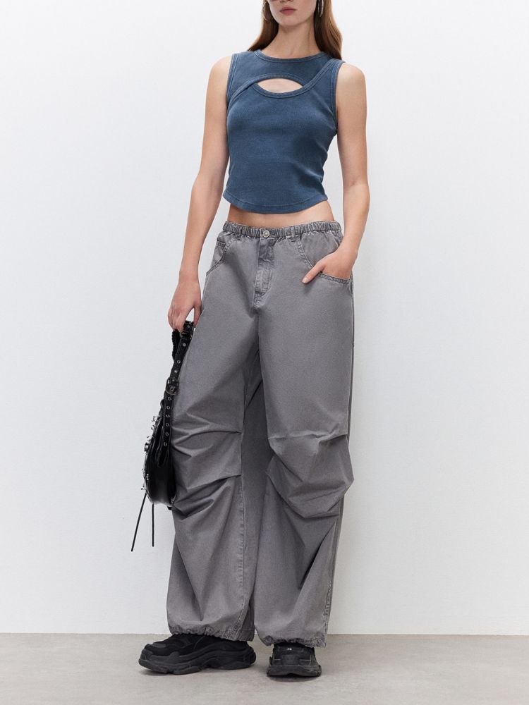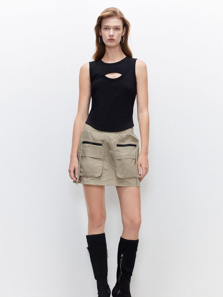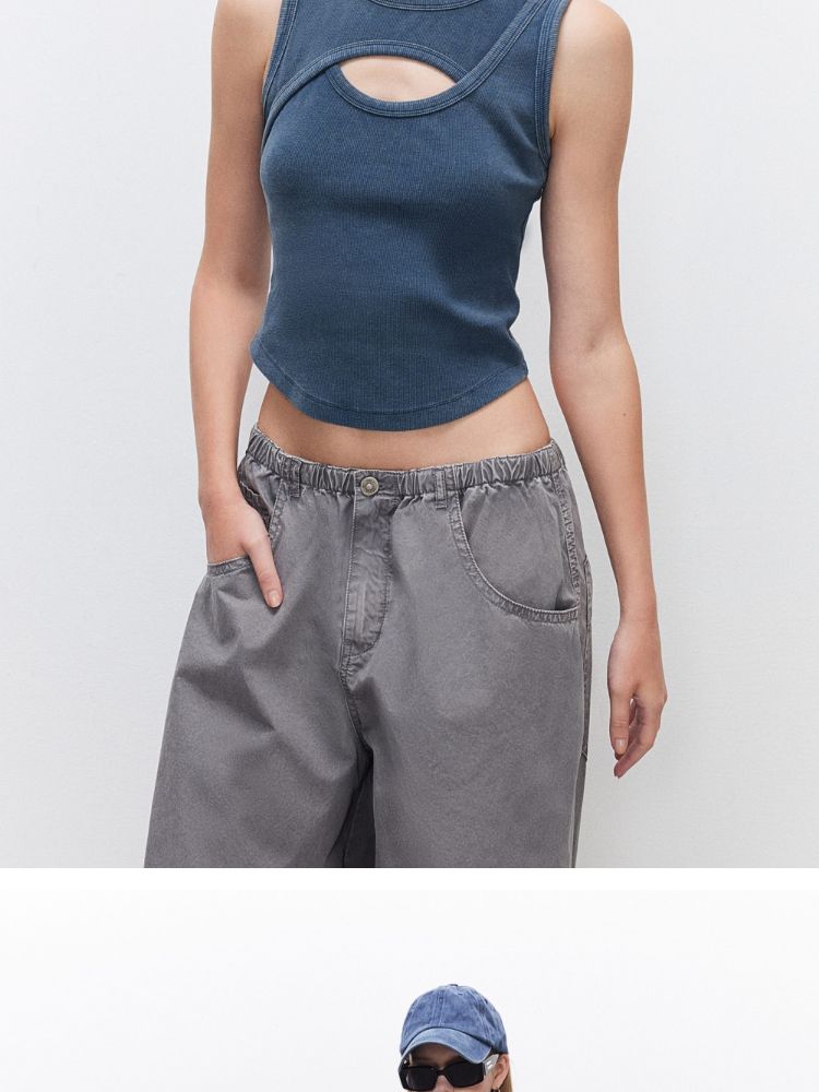 【圆领短款】2025夏季个性镂空修身显瘦无袖T恤女 494234
