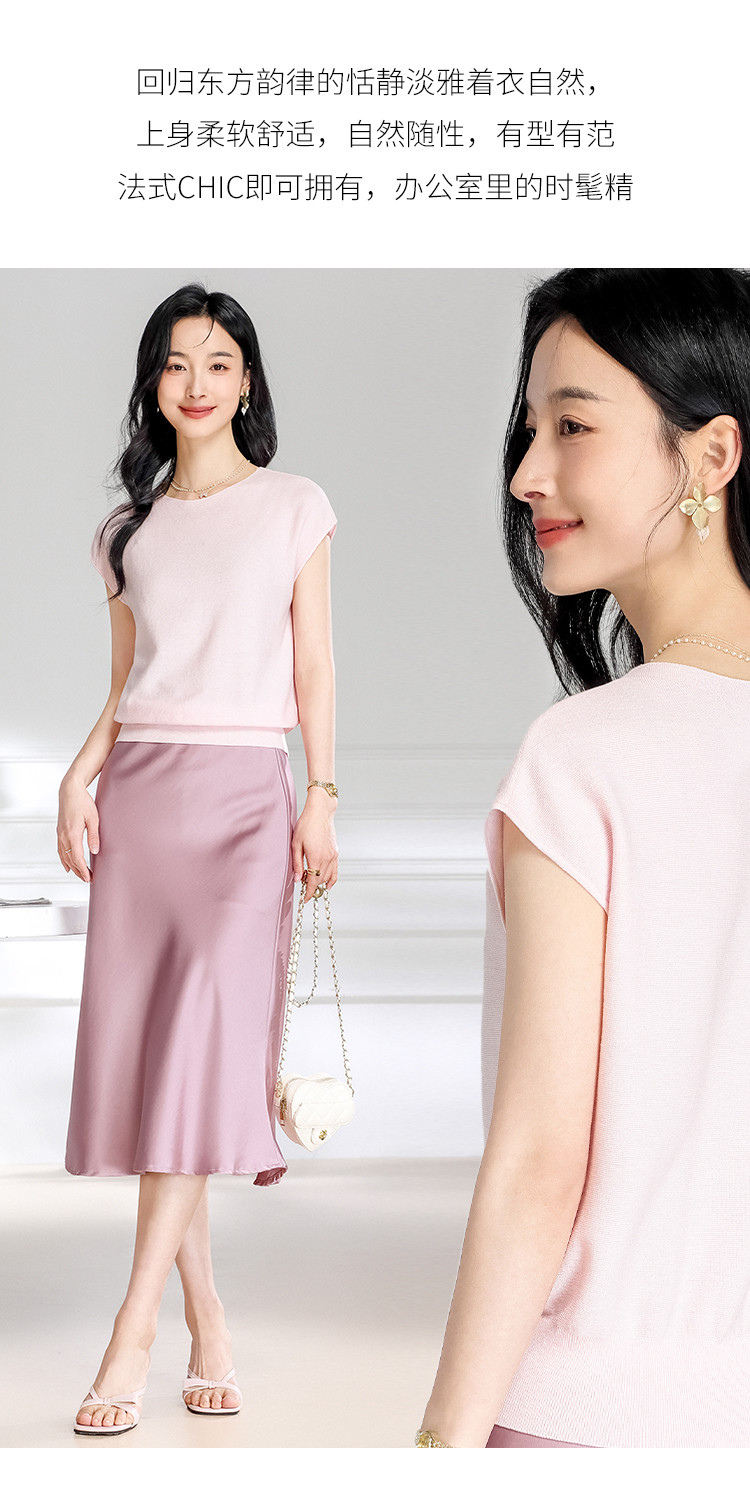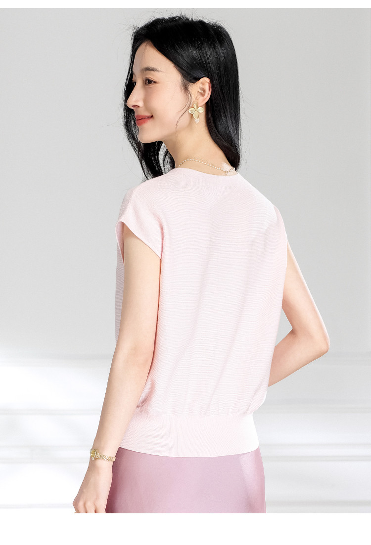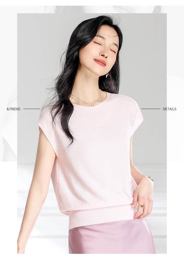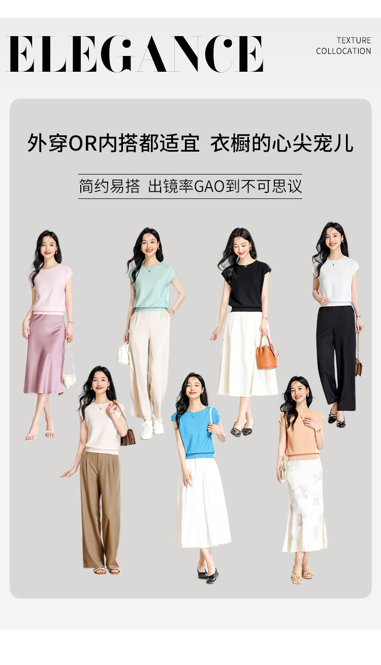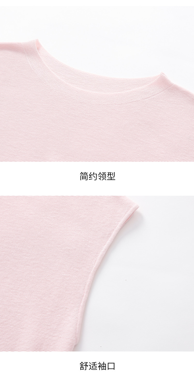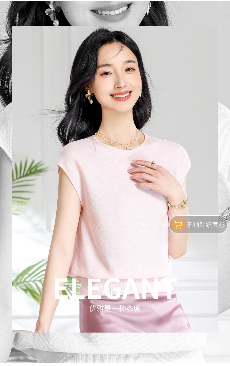 商品名称:圆领纯色简约桑蚕丝T恤女时尚舒适无袖夏季薄款针织衫小衫 646419