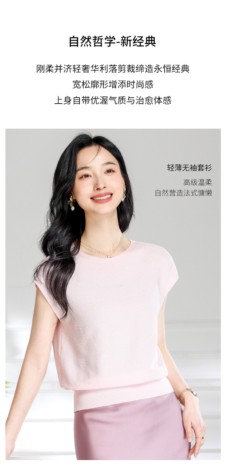 圆领纯色简约桑蚕丝T恤女时尚舒适无袖夏季薄款针织衫小衫 646419