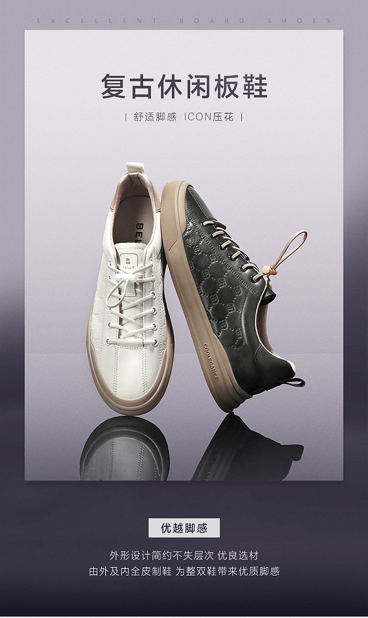 百丽防撞边小白鞋男春新潮搭时髦板鞋 139546