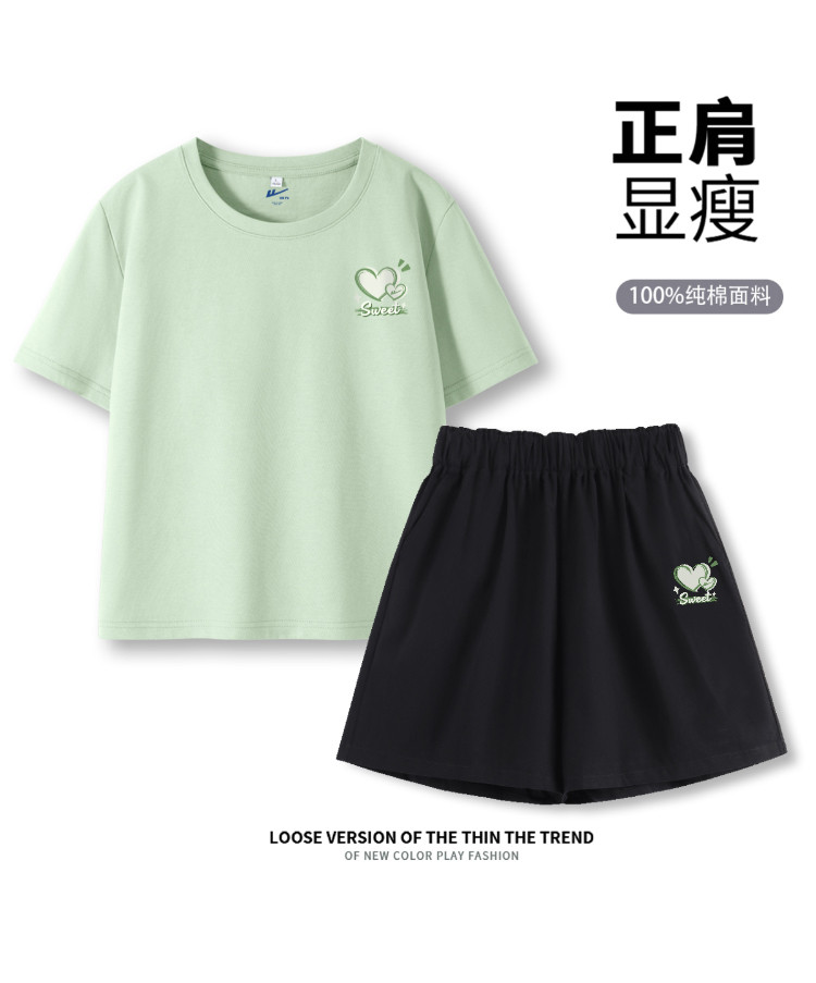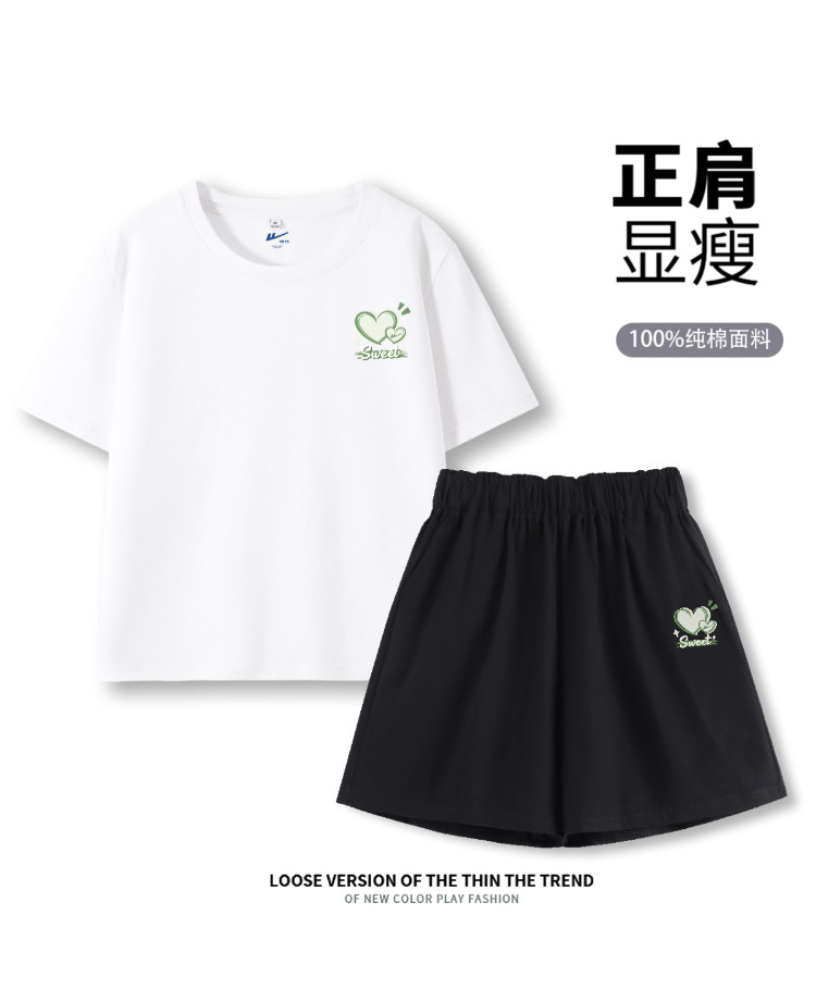 【女装】夏季休闲运动套装女短款T恤+三分短裤纯棉小个子两件套 377555