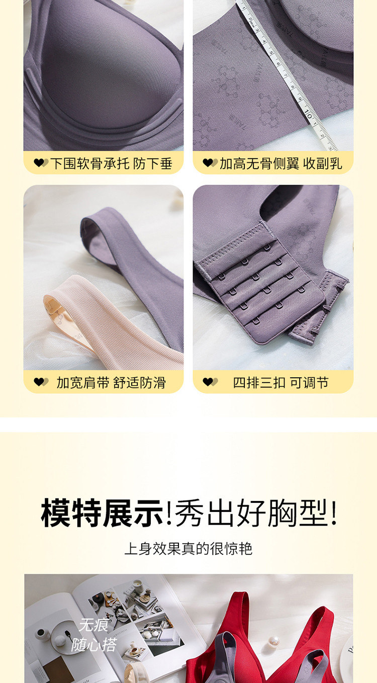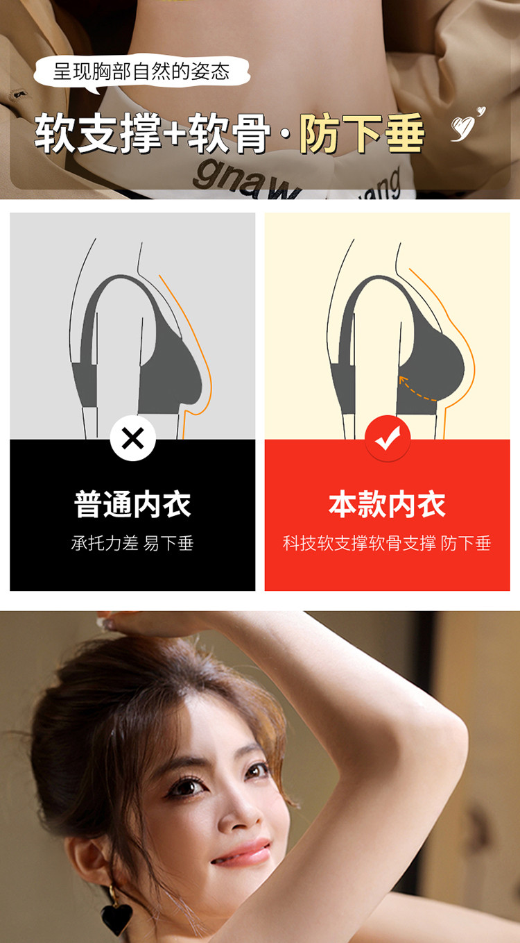 商品名称:【无痕提拉】无钢圈文胸内衣女大小胸聚拢收副乳软支撑女士内衣 949451