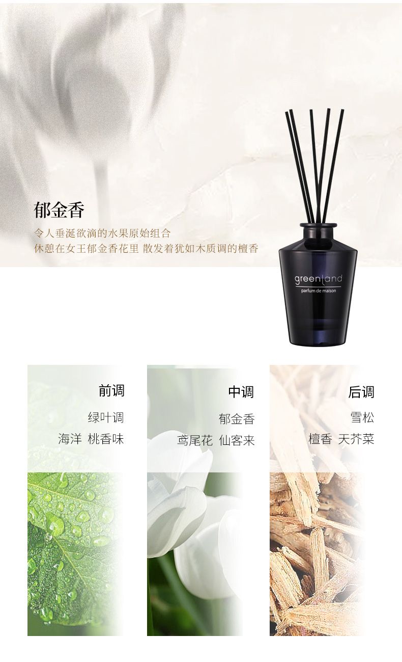商品名称:格兰大地greenland高级扩香无火香氛居家必备浪漫花香植物萃取室内卧室去异味
