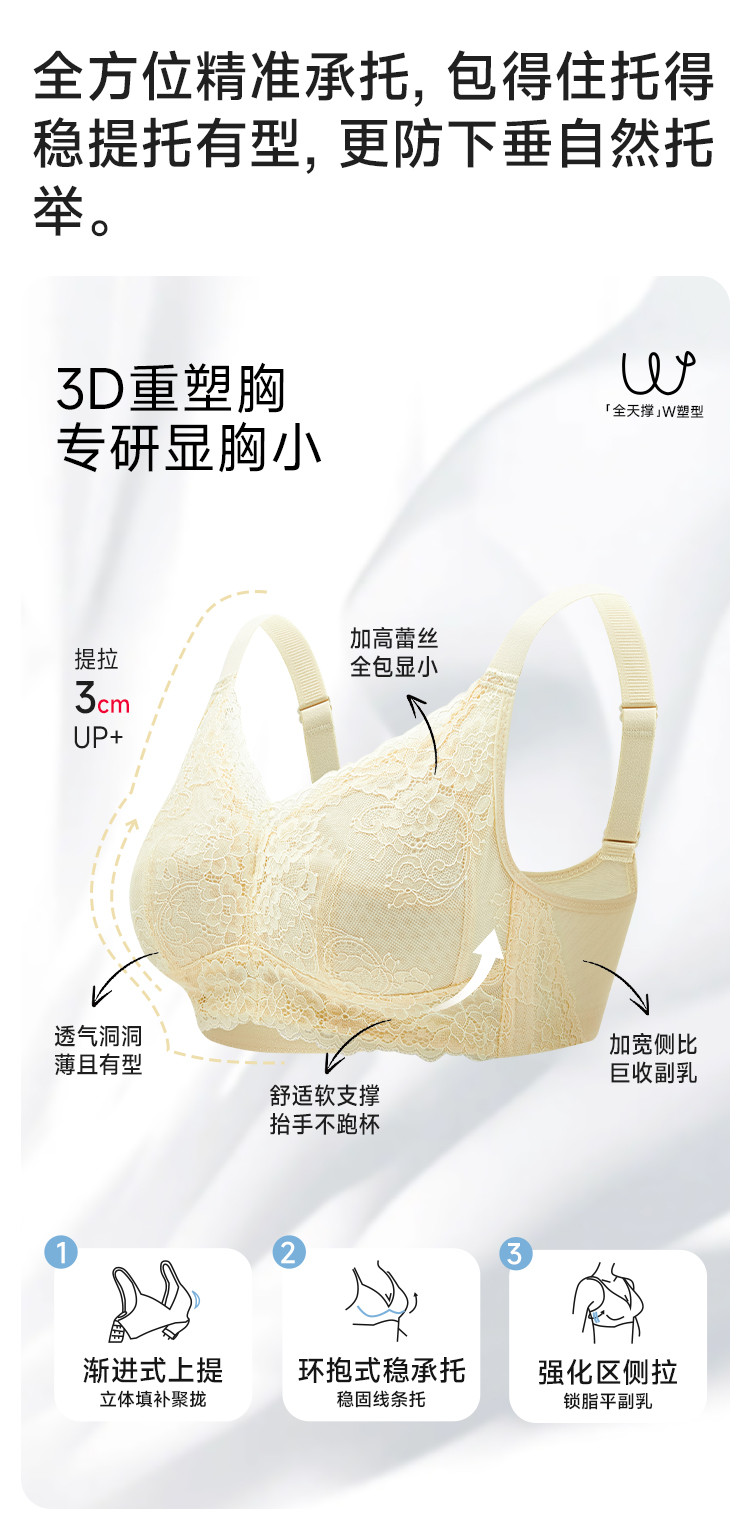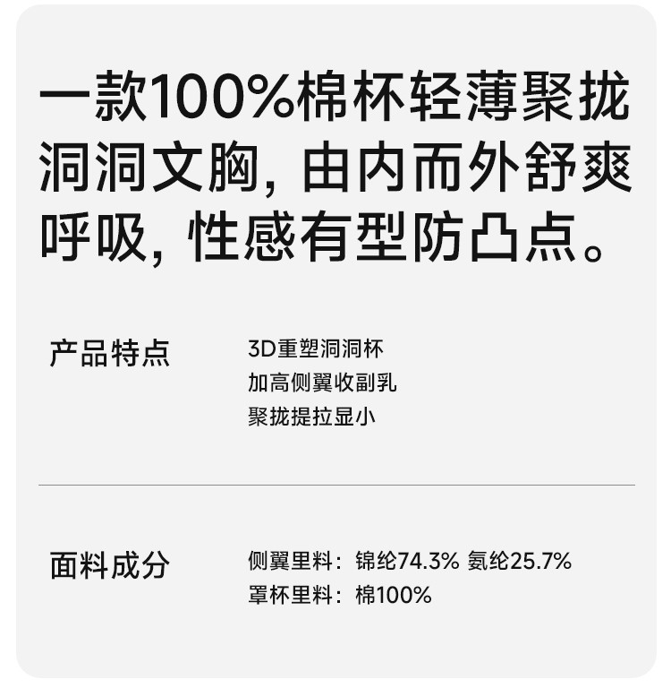 商品名称:【100%纯棉里杯】内衣大胸显小防下垂夏季轻薄无钢圈文胸罩女 544011