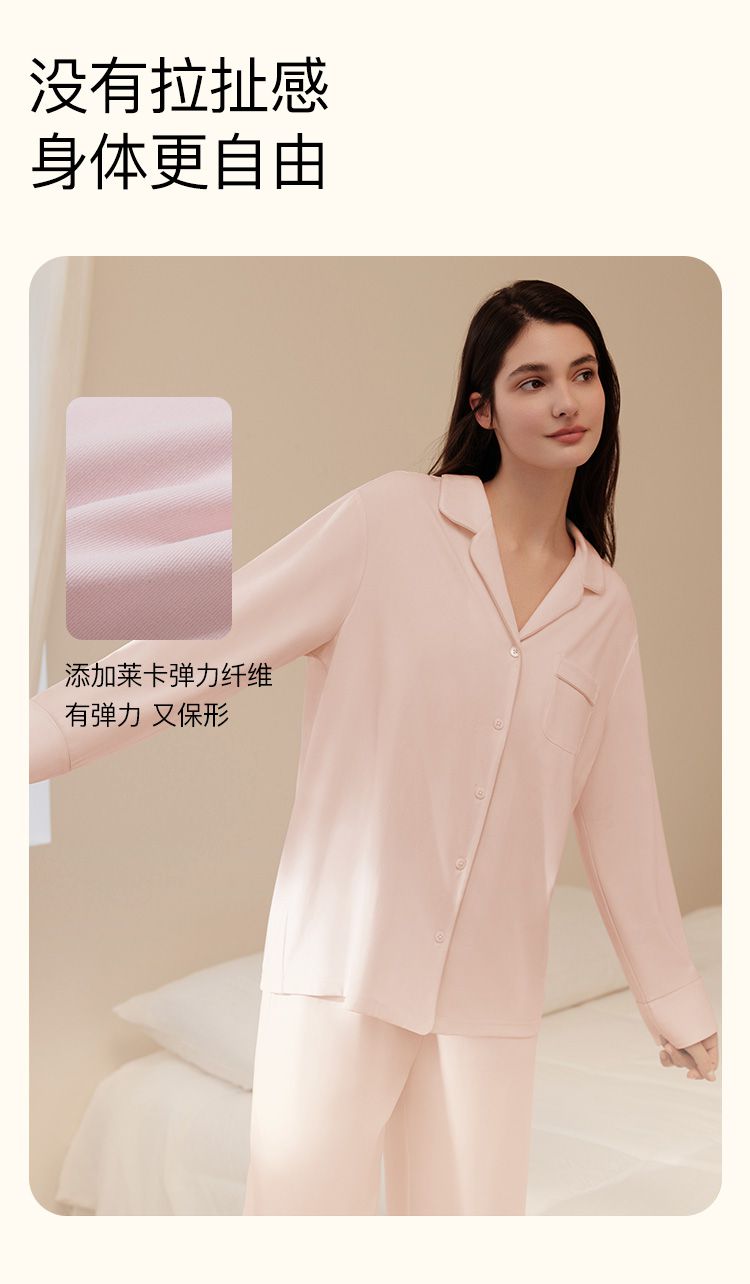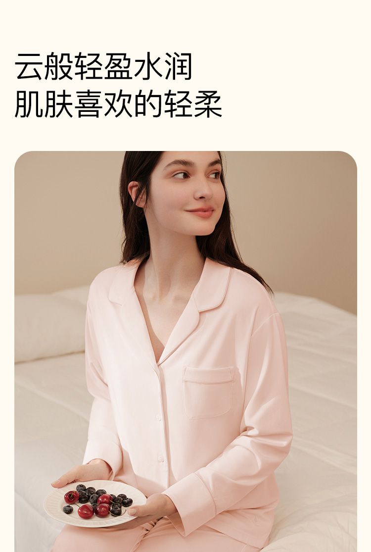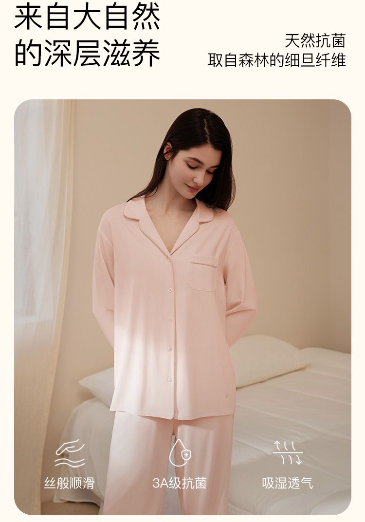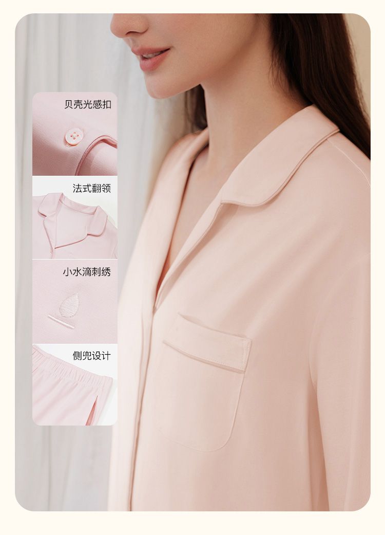商品名称:【高级感】25新款法式翻领长袖长裤家居服3A抗菌睡衣套装女 862592