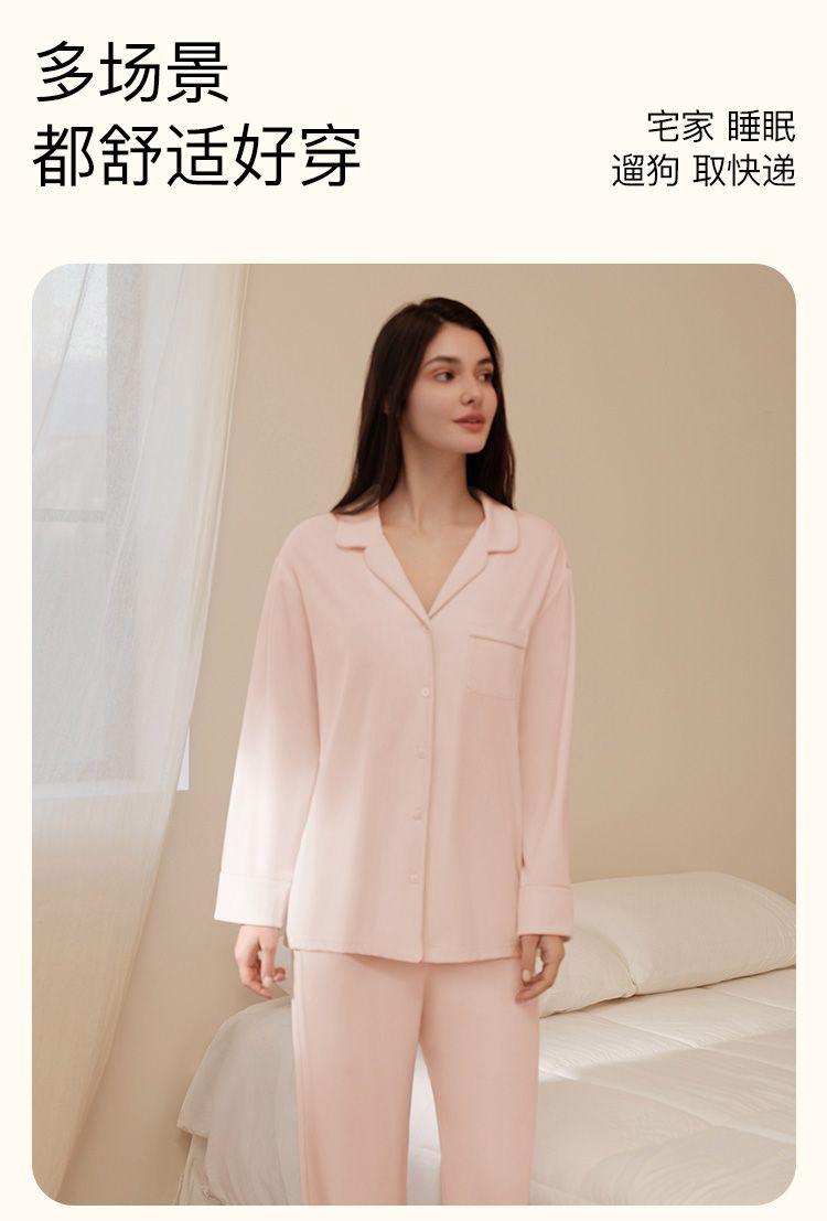 【高级感】25新款法式翻领长袖长裤家居服3A抗菌睡衣套装女 862592