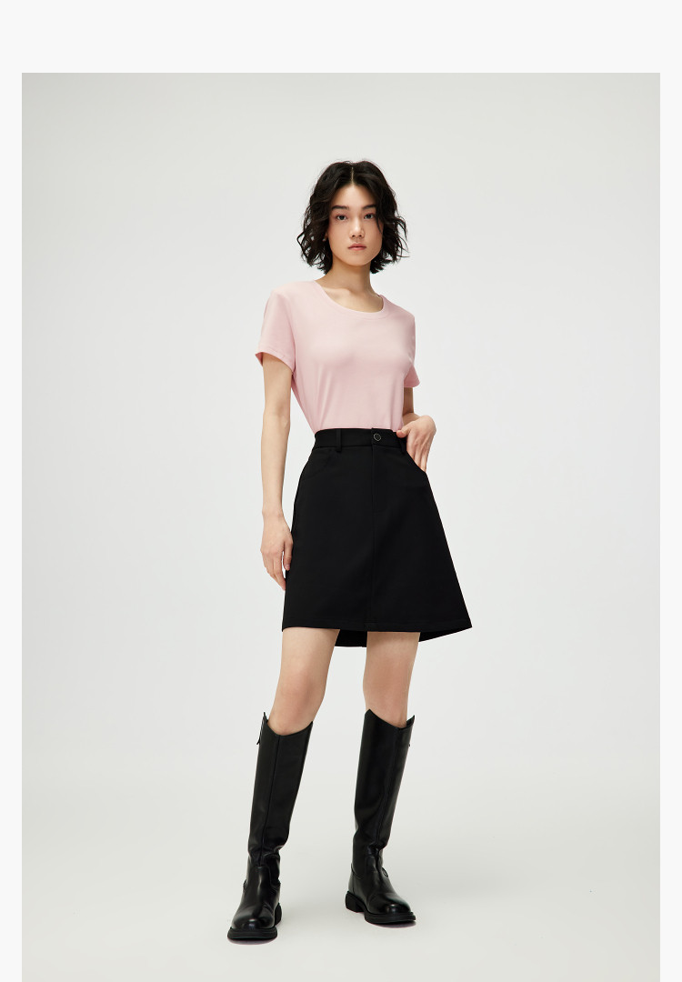 商品名称:【女款棉氨弹力】25夏季圆领时尚基础款纯色女士短袖T恤 657288