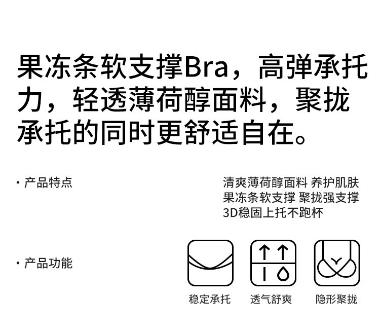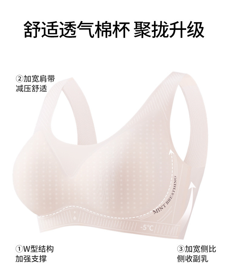 商品名称:无痕提拉运动内衣女夏一体式背心无钢圈收副乳聚拢不空杯薄款文胸 284555