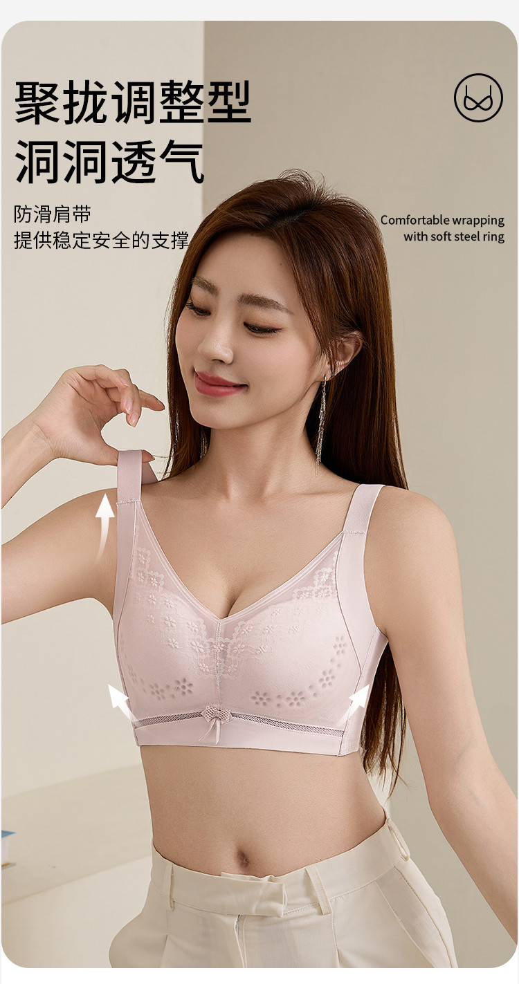 商品名称:【透气洞洞杯】大胸显小聚拢舒适调整型女文胸罩无钢圈女士内衣夏 710539
