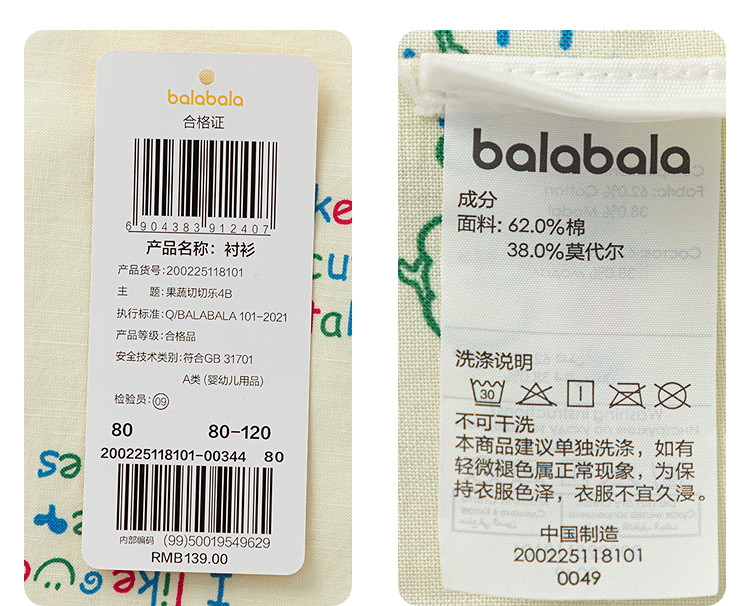 商品名称:【商场同款】巴拉巴拉婴儿衬衫宝宝上衣薄款男童衬衣清新洋气帅气 828997