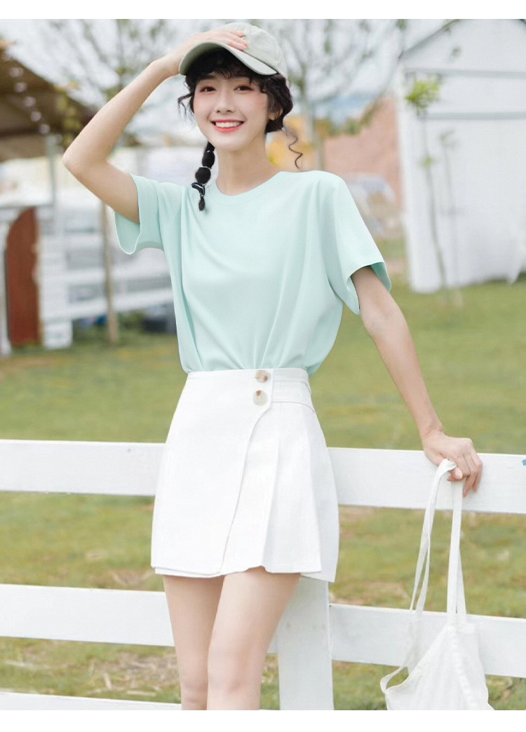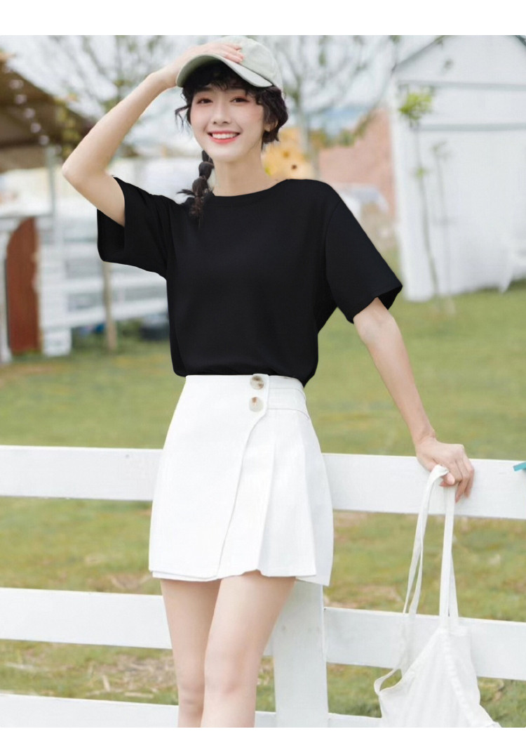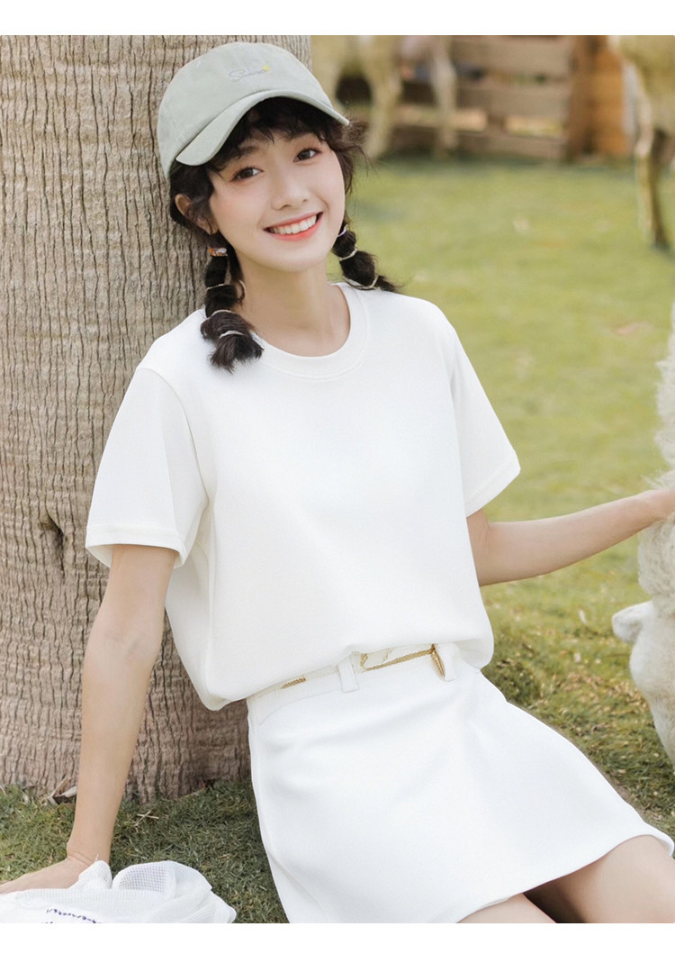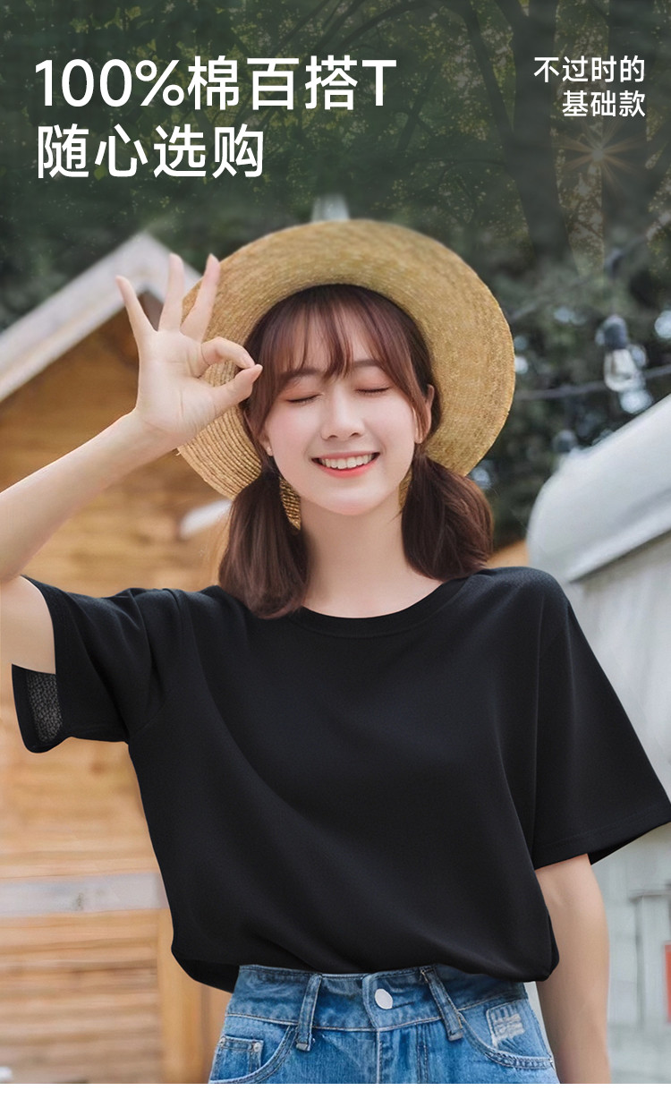 商品名称:【100%纯棉】短袖打底T恤女高级感春夏薄款全棉内搭t恤女 040715