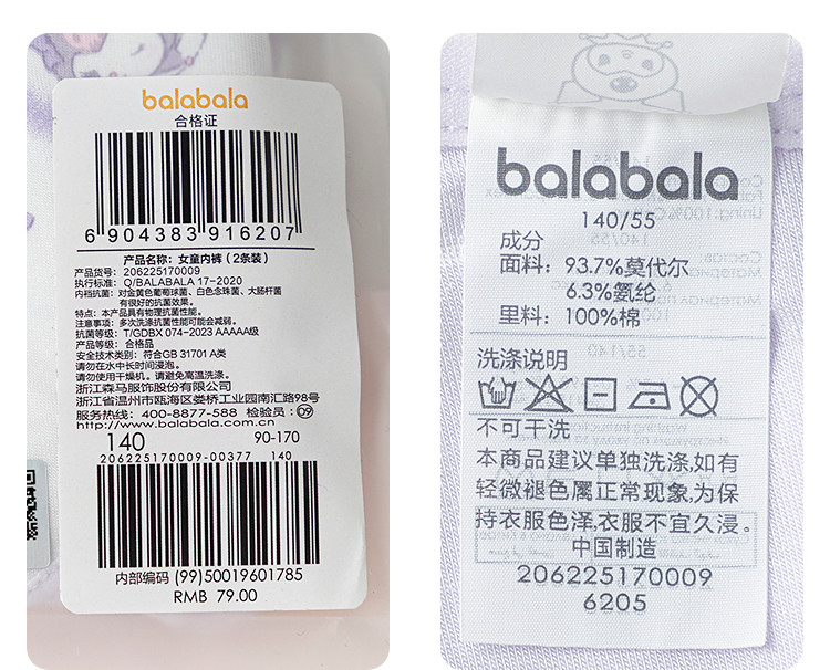 商品名称:5A抑菌纯棉裆库洛米IP女童内裤a类成长期儿童三角裤两条装 040197