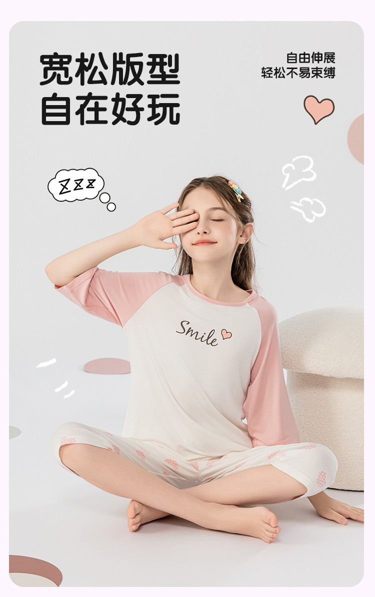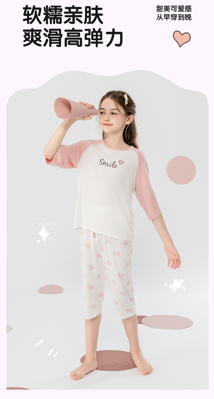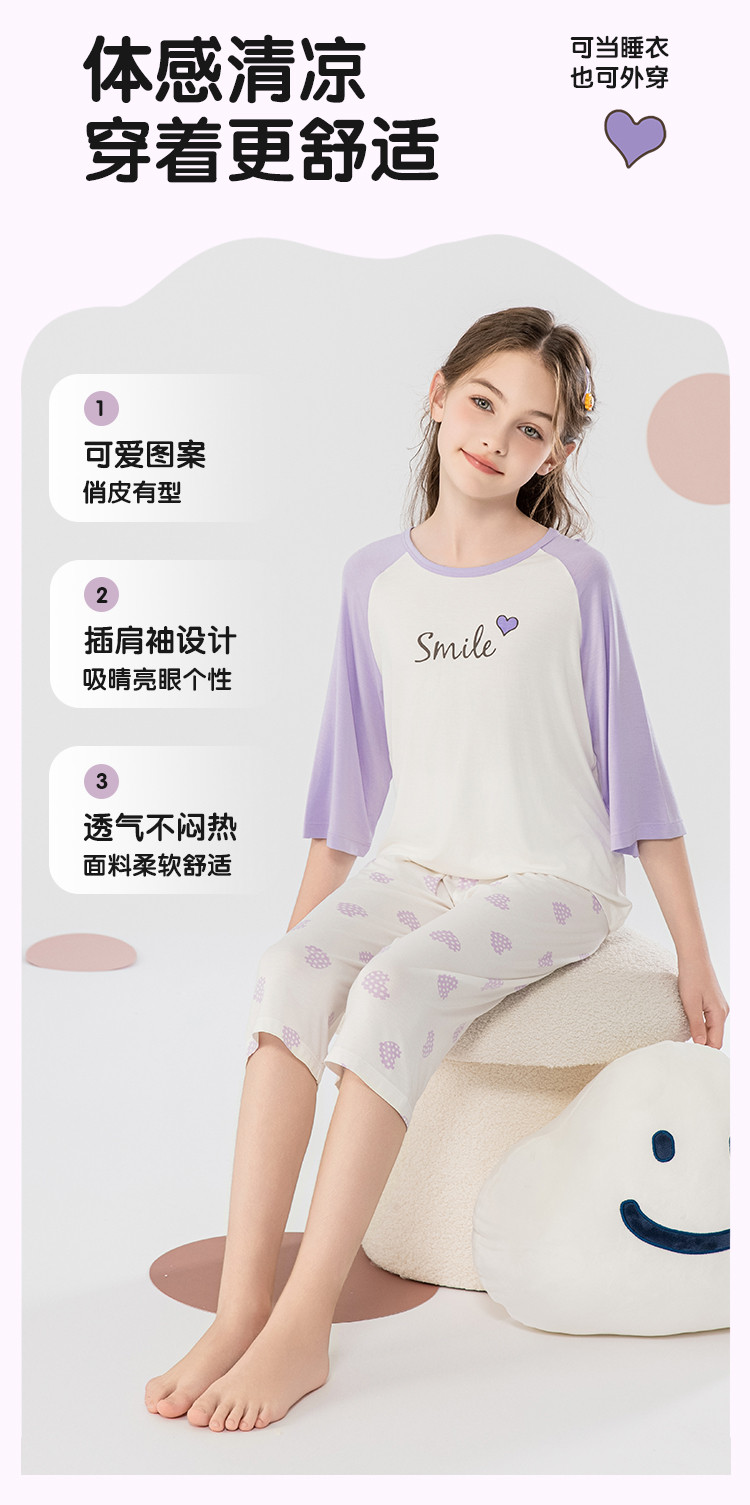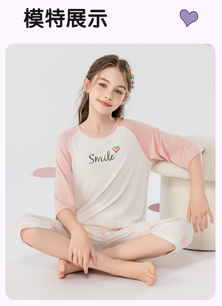 商品名称:儿童睡衣睡裤夏季薄款冰丝高弹圆领女童家居服套装中大童空调服 086475