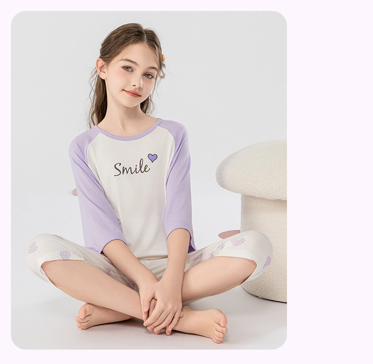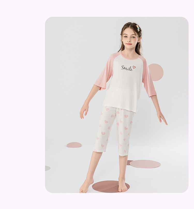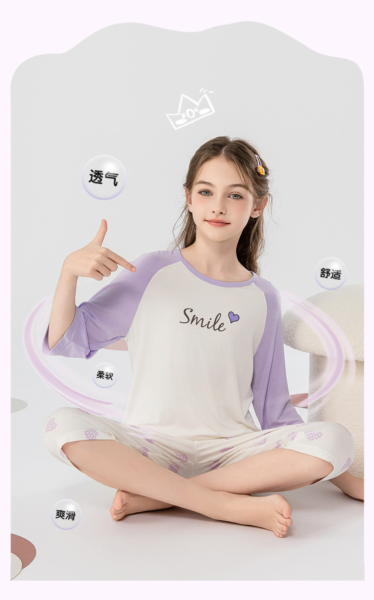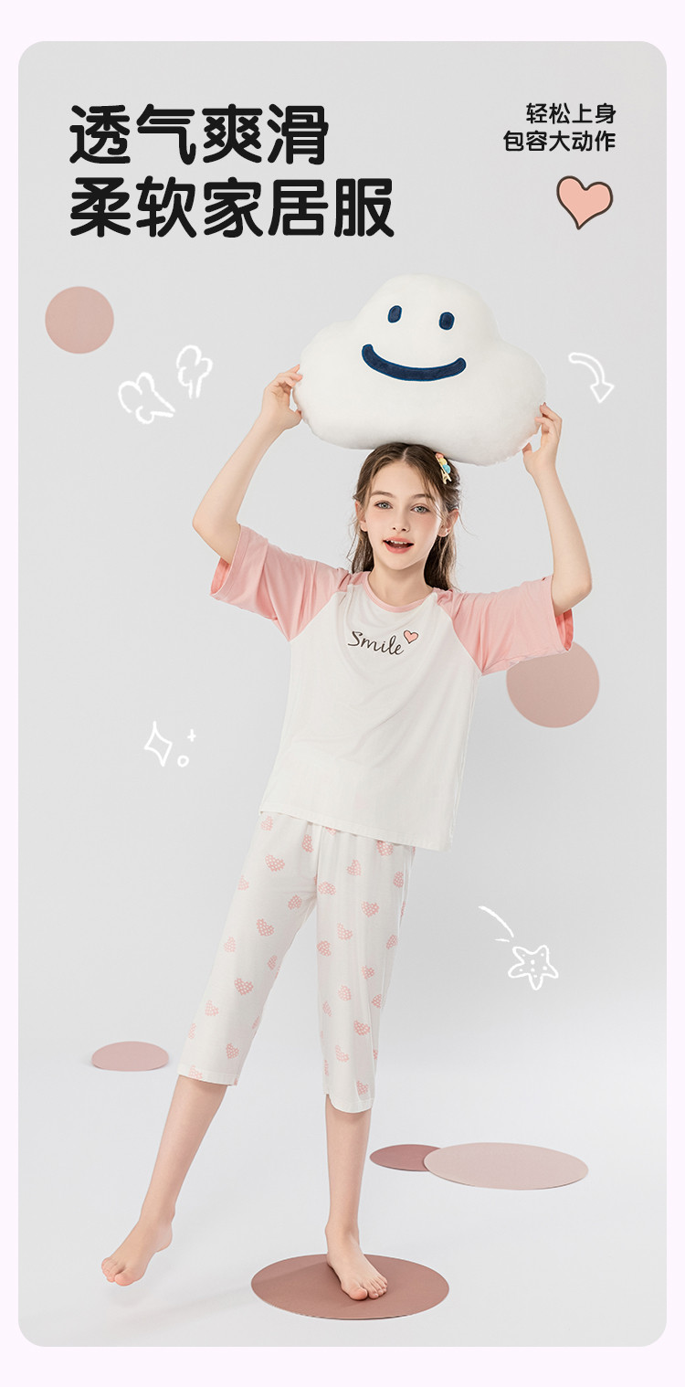 商品名称:儿童睡衣睡裤夏季薄款冰丝高弹圆领女童家居服套装中大童空调服 086475