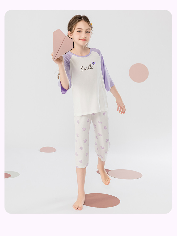 儿童睡衣睡裤夏季薄款冰丝高弹圆领女童家居服套装中大童空调服 086475