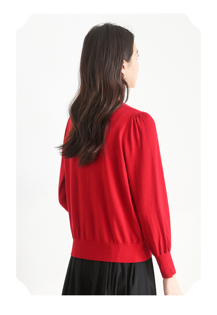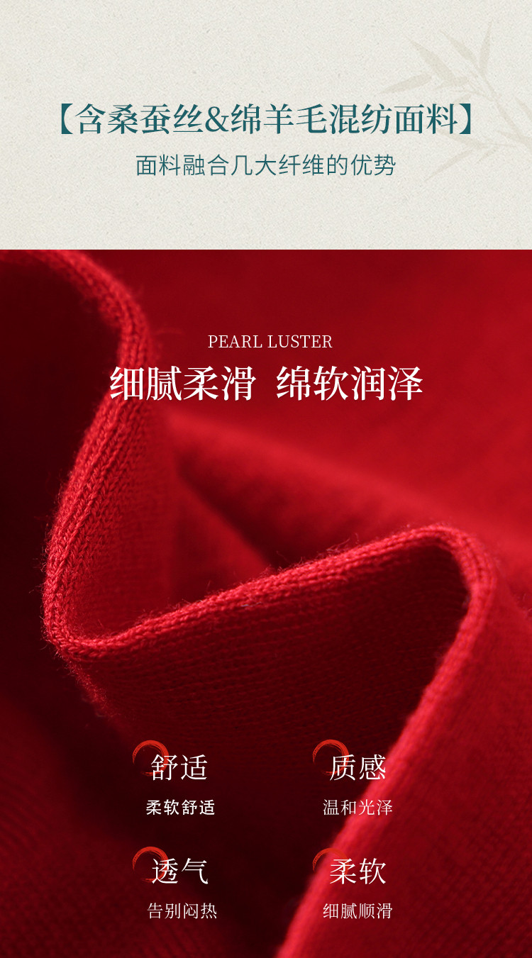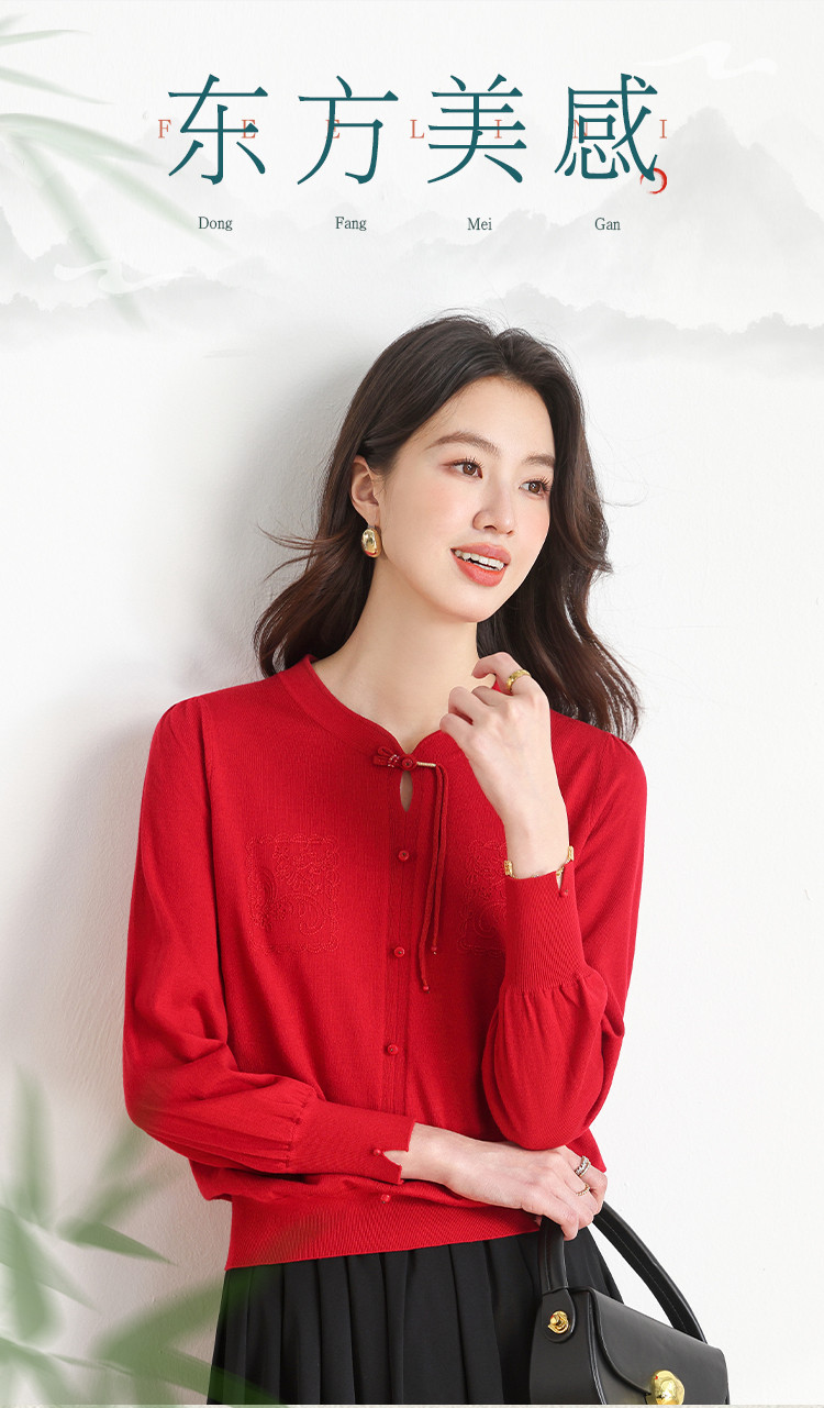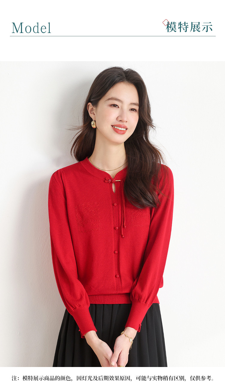 商品名称:【新中式】旗袍领盘扣针织衫女套头纯色含桑蚕丝打底衫春装上衣 561107