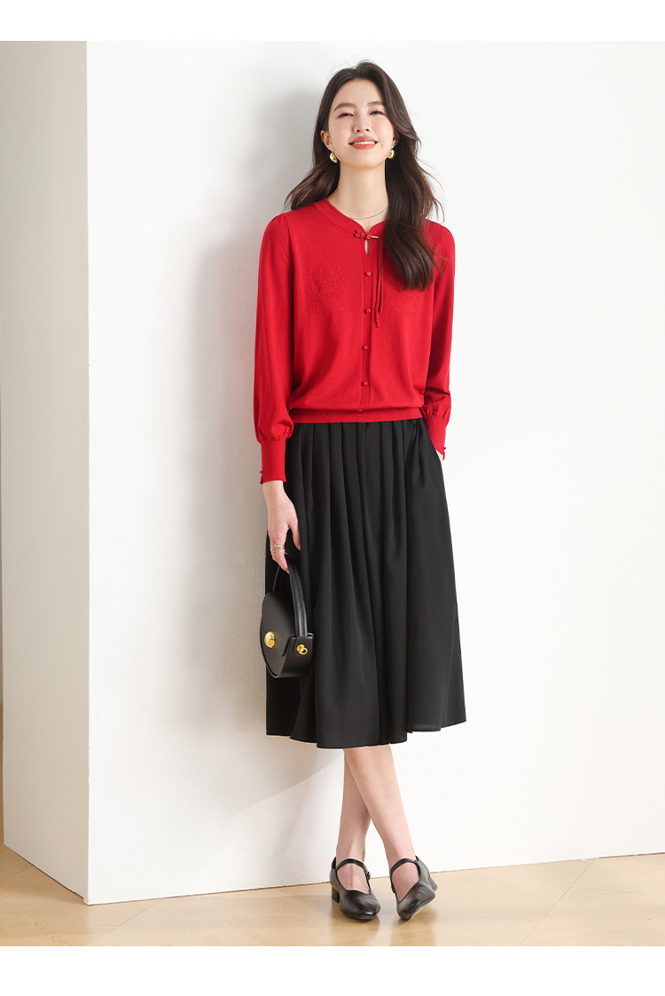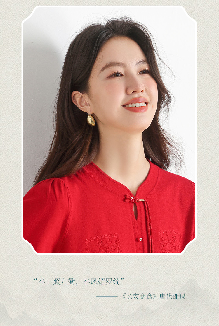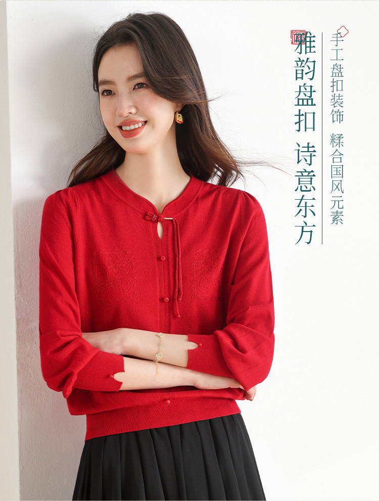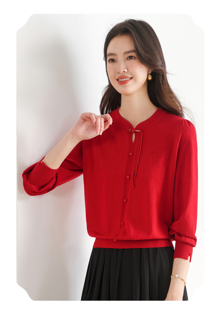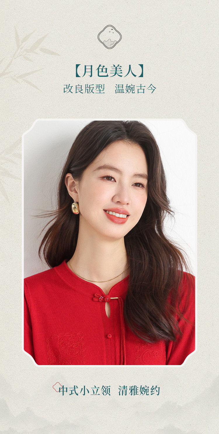商品名称:【新中式】旗袍领盘扣针织衫女套头纯色含桑蚕丝打底衫春装上衣 561107