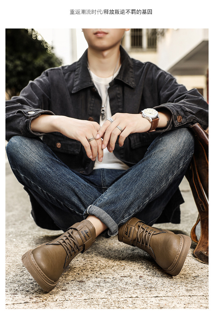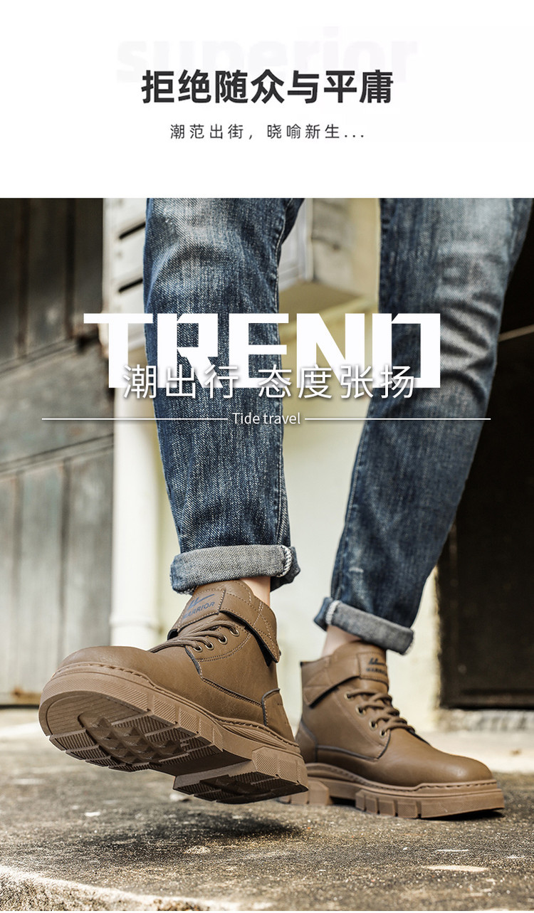 商品名称:【热卖爆款】春季国潮百搭高帮马丁靴休闲皮面防泼水工装靴子 762000