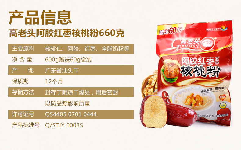 商品名称:高老头 阿胶红枣核桃粉660g