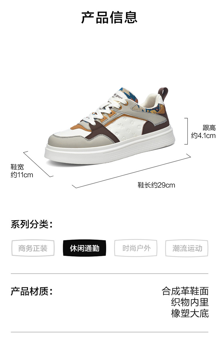 商品名称:男鞋2025新款时尚透气板鞋男士拼接休闲百搭软底小白鞋 228879