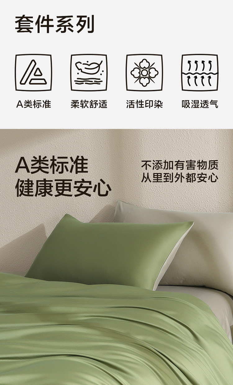 商品名称:轻奢60支简约纯色莱赛尔天丝四件套夏季被套床单家用床上用品 957507