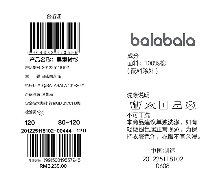 商品名称:巴拉巴拉童装男童短袖衬衫纯棉衬衣2025新款夏装户外印花潮流 993349