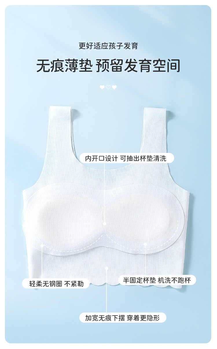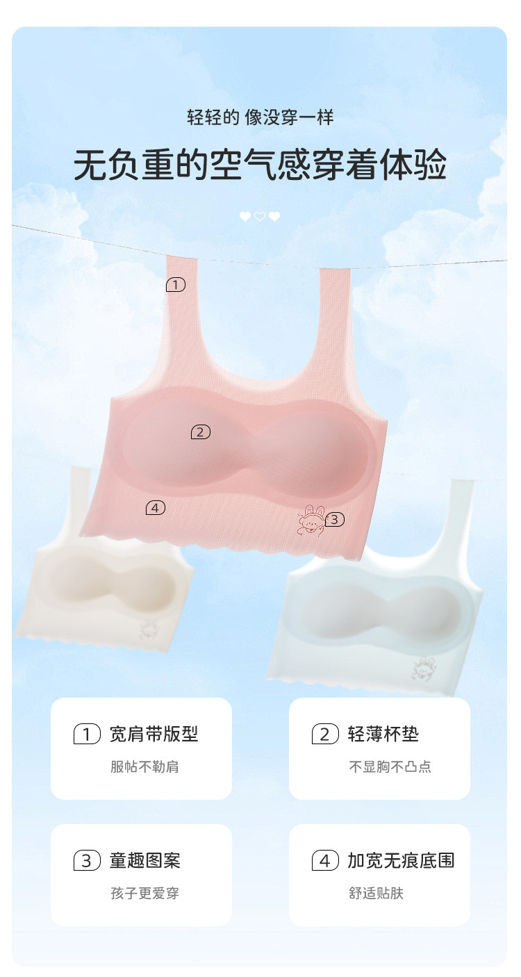 商品名称:【冰丝透气网眼】无痕运动不上窜女儿童内衣发育期12岁二阶文胸 838923