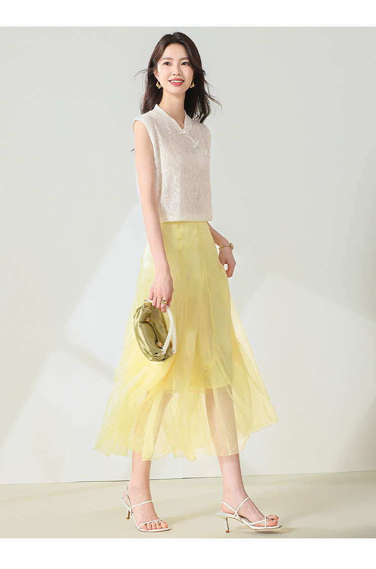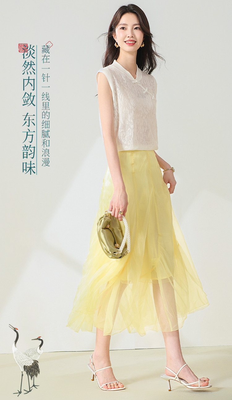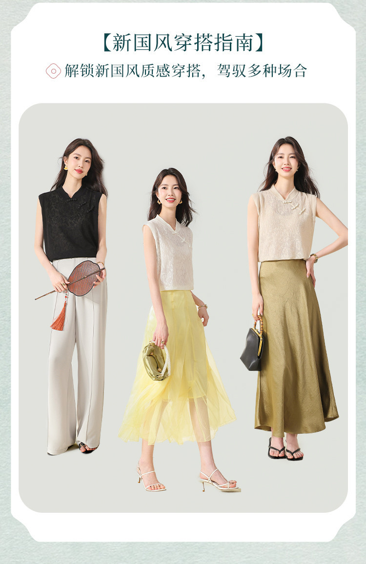 【国风】新中式旗袍领精美镂空提花含绵羊毛针织打底背心无袖T恤 316691
