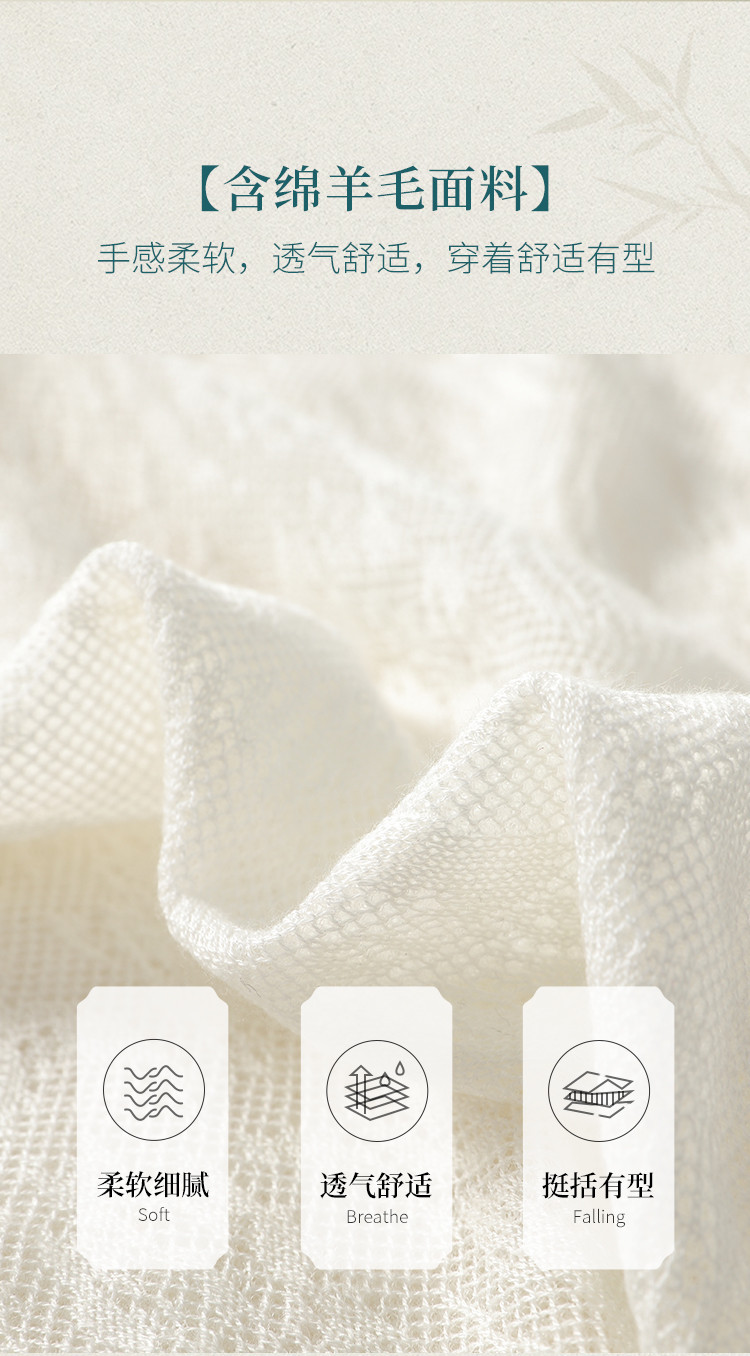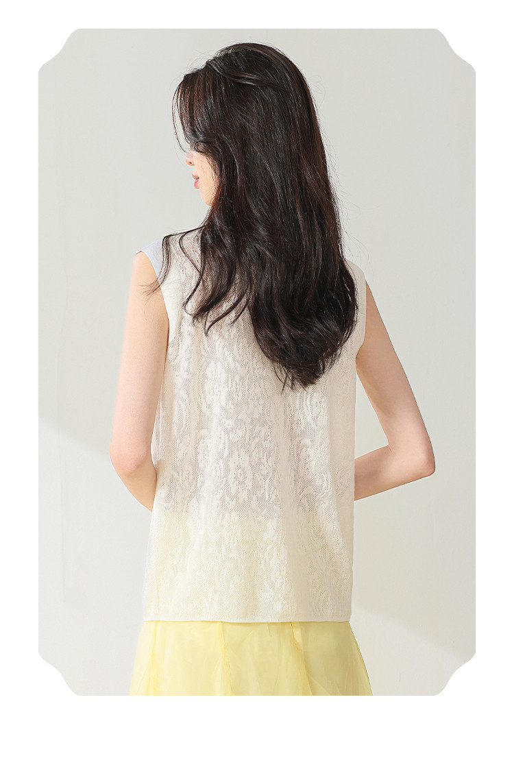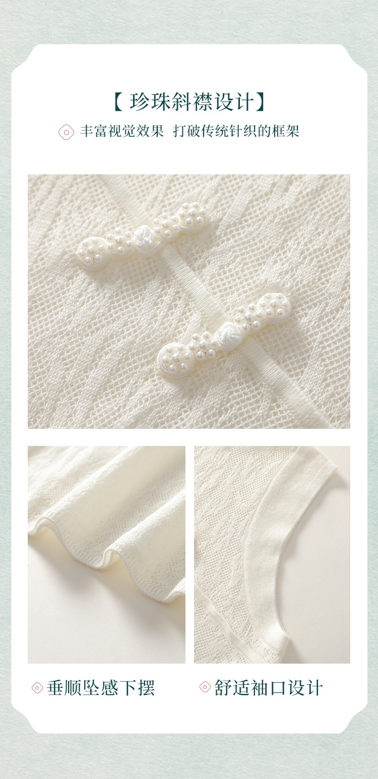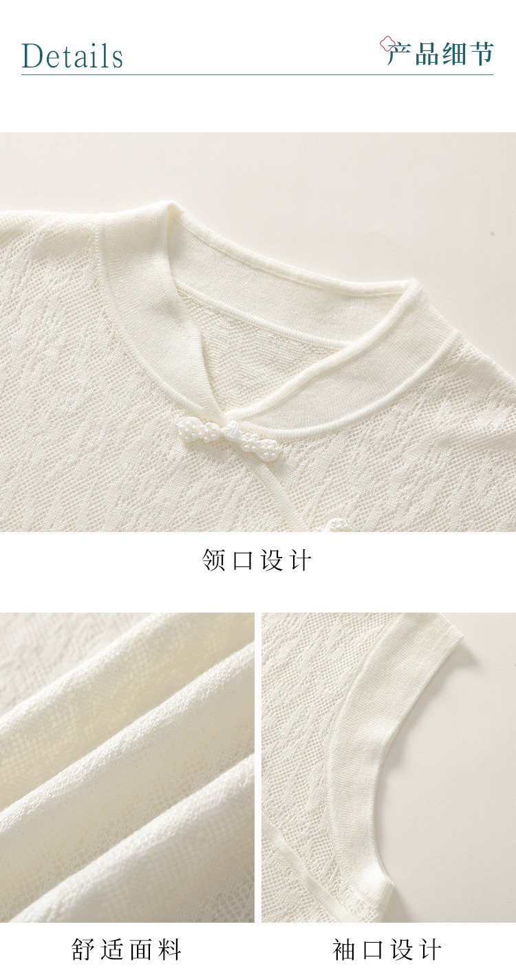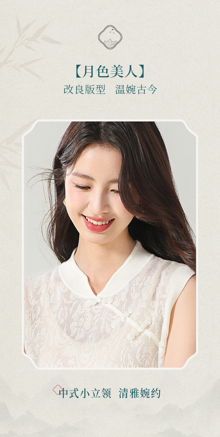 商品名称:【国风】新中式旗袍领精美镂空提花含绵羊毛针织打底背心无袖T恤 316691