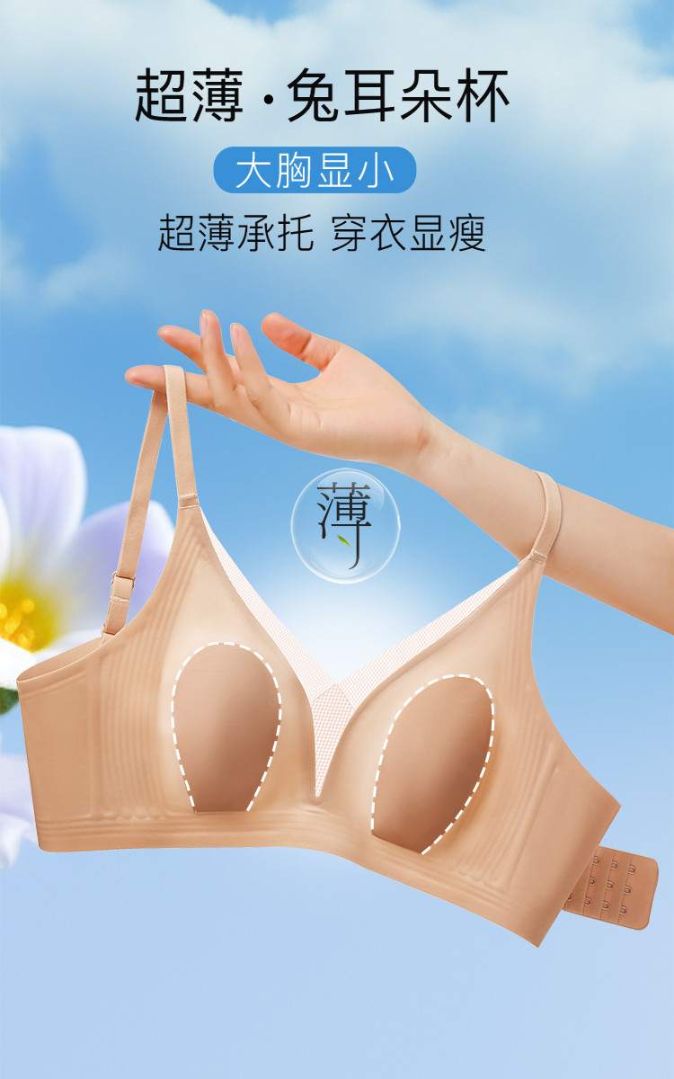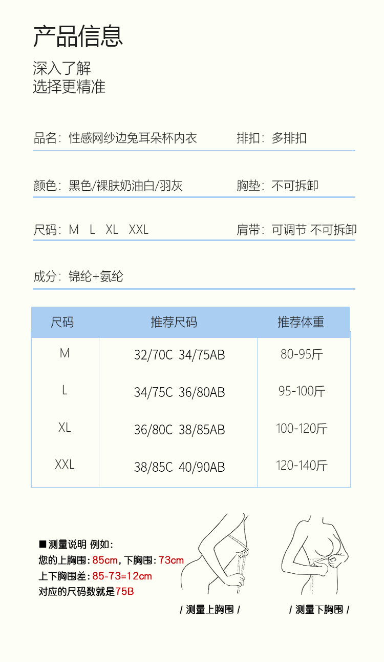 商品名称:【薄透小凉皮】性感网纱边兔耳朵杯大胸显小胸聚拢女士内衣文胸罩 090718