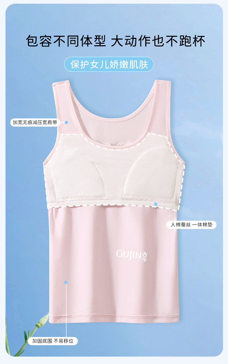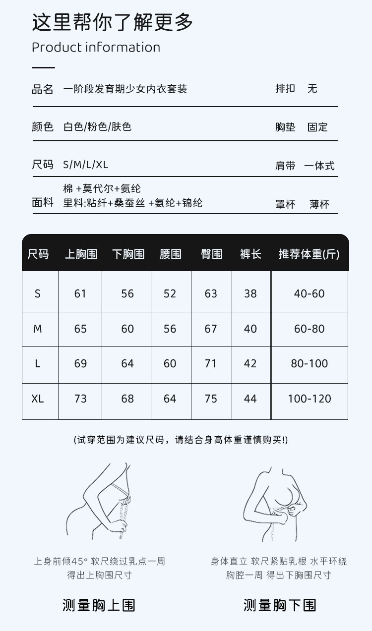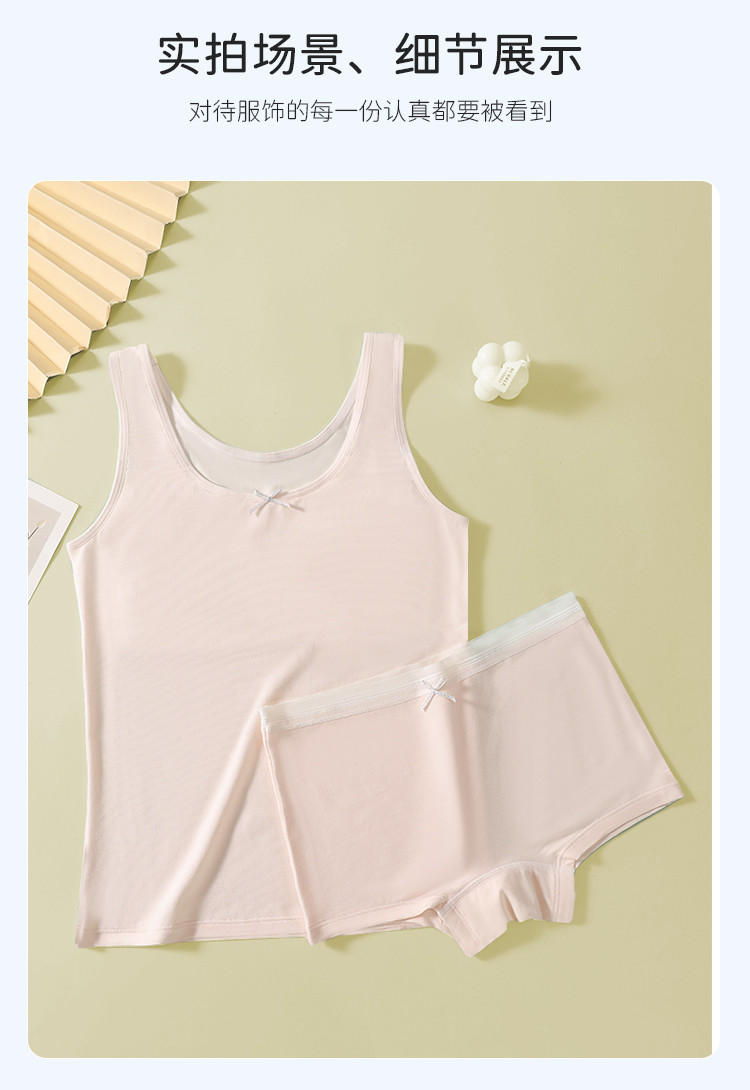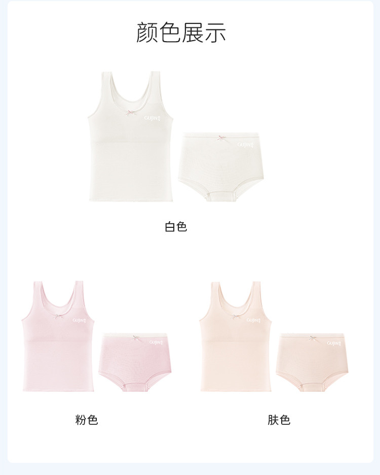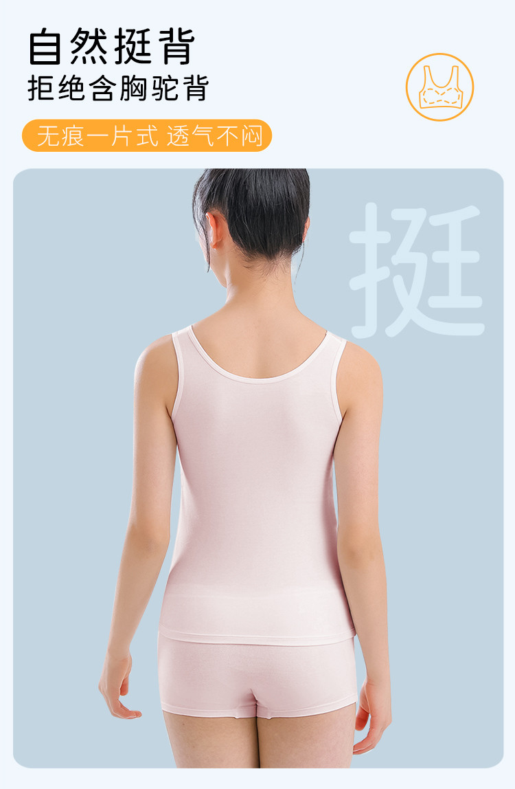 商品名称:【少女内衣+内裤2件装】一阶段发育期女童文胸套装中长背心薄款 453470
