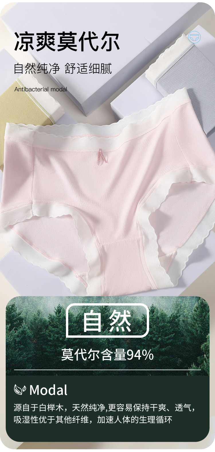 【丝滑莫代尔】无痕抑菌含桑蚕丝裆中腰三角短女士内裤女夏季薄款 115467