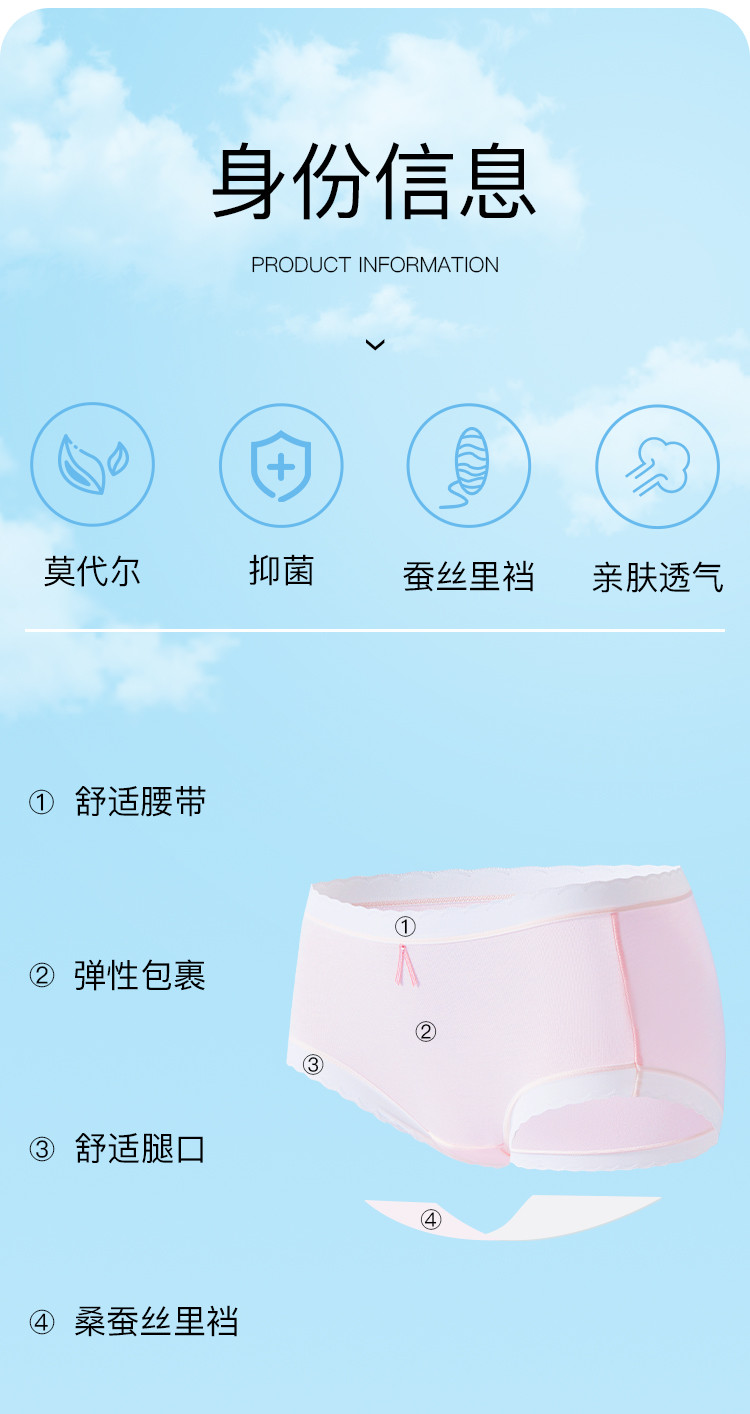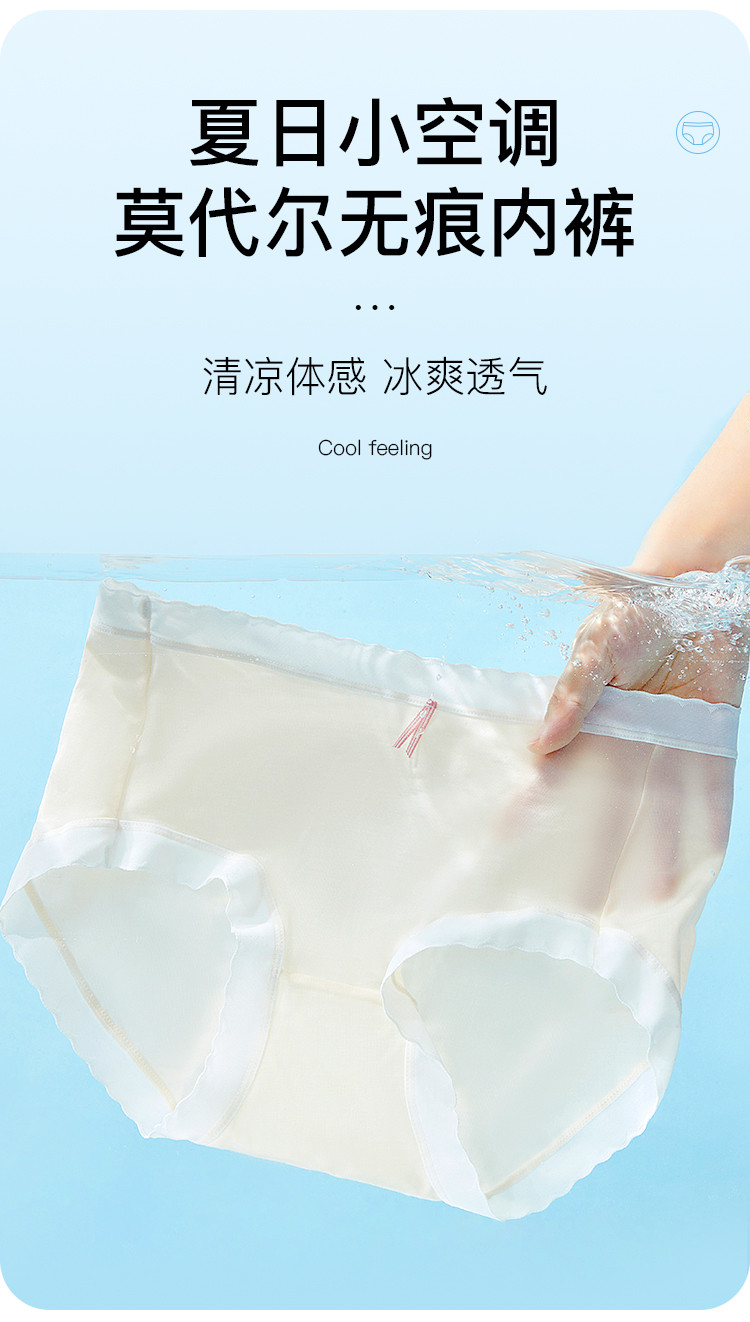 商品名称:【丝滑莫代尔】无痕抑菌含桑蚕丝裆中腰三角短女士内裤女夏季薄款 115467