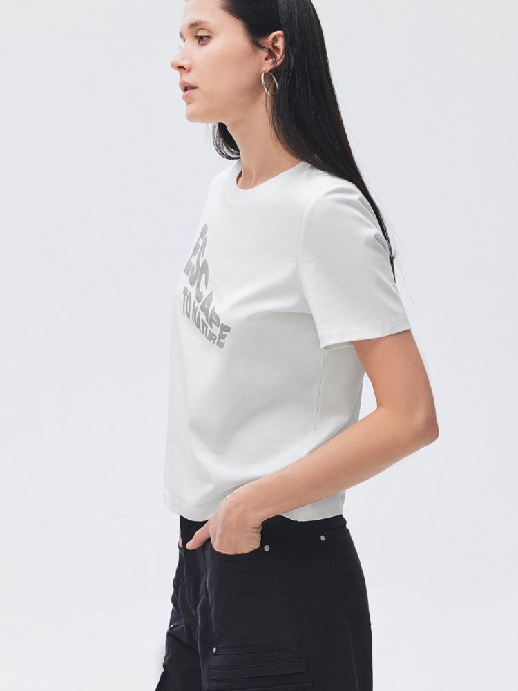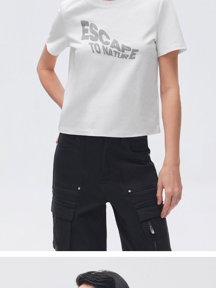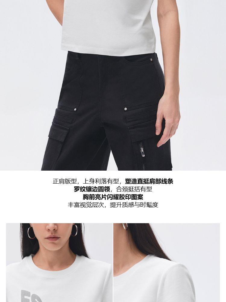 商品名称:【圆领正肩】2025夏季纯棉基础款胶印字母合体T恤女 988506