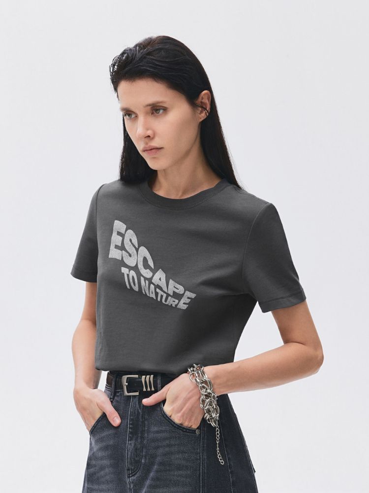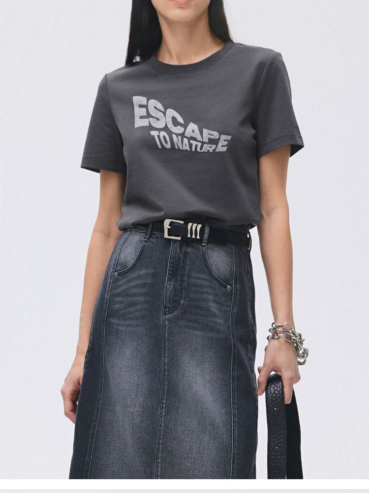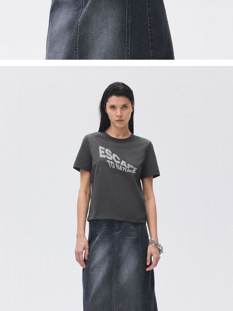 【圆领正肩】2025夏季纯棉基础款胶印字母合体T恤女 988506