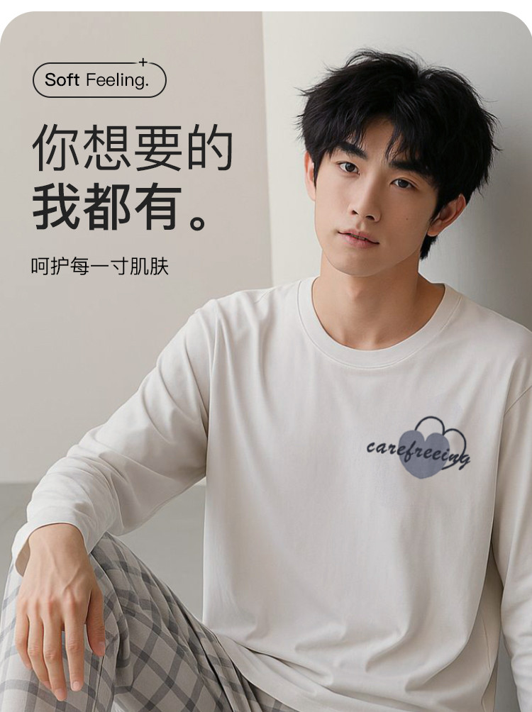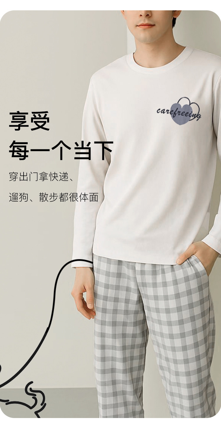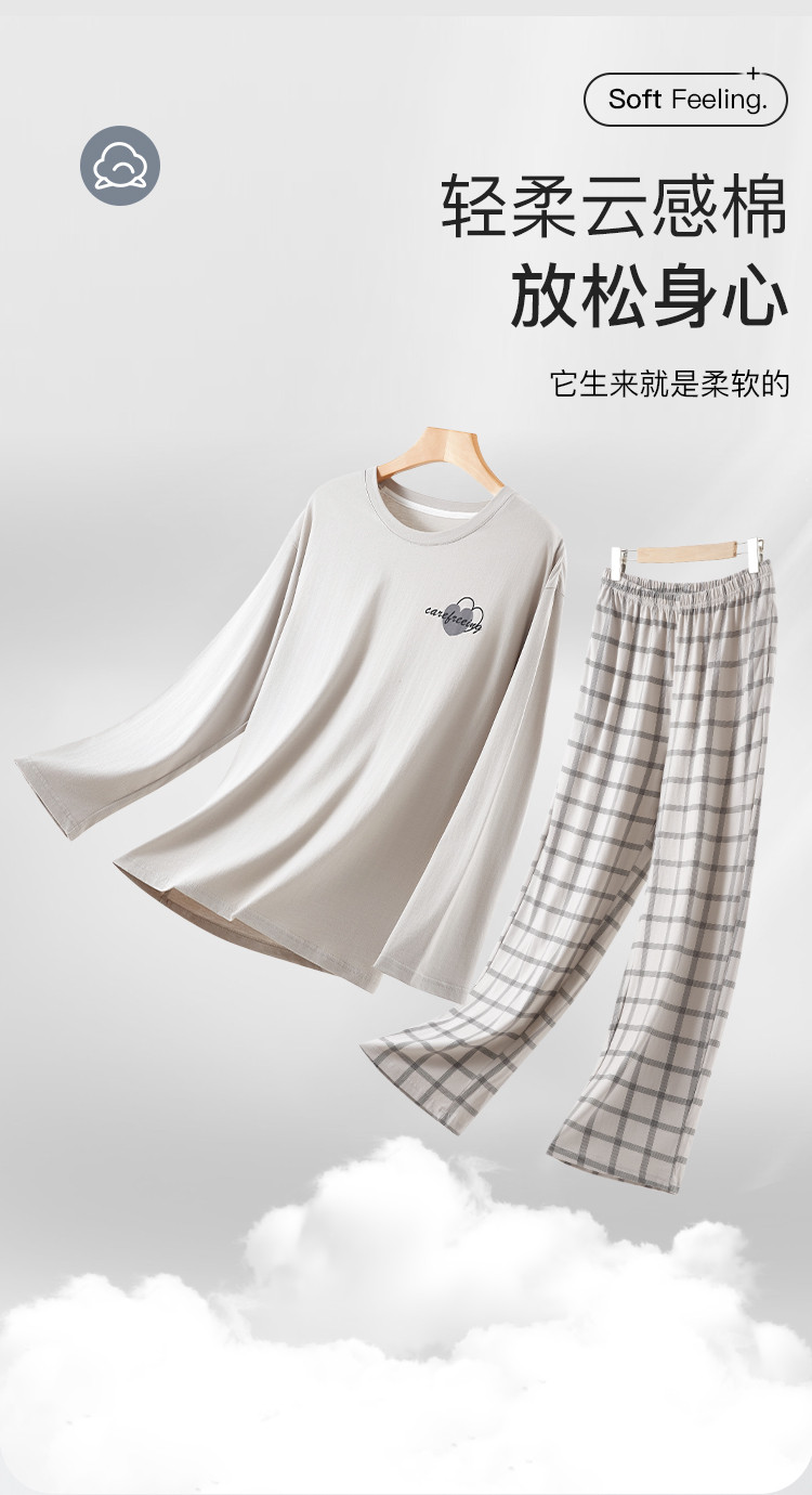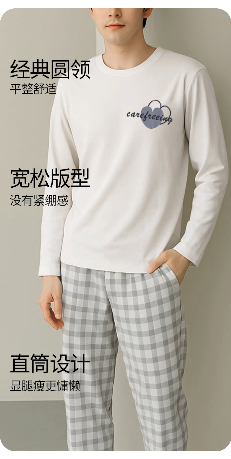 【100%棉】男士纯棉睡衣春秋长袖圆领可外穿两件套家居服睡衣 417611