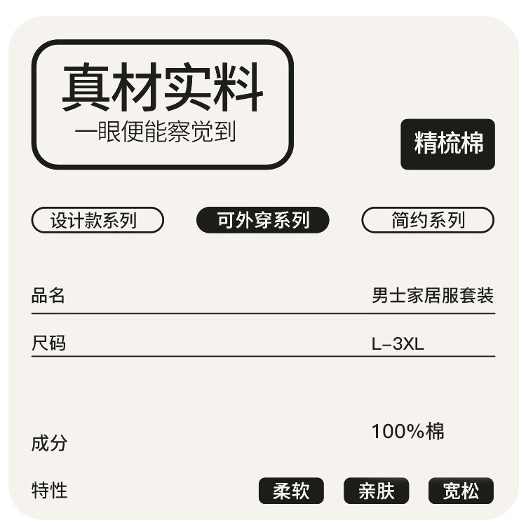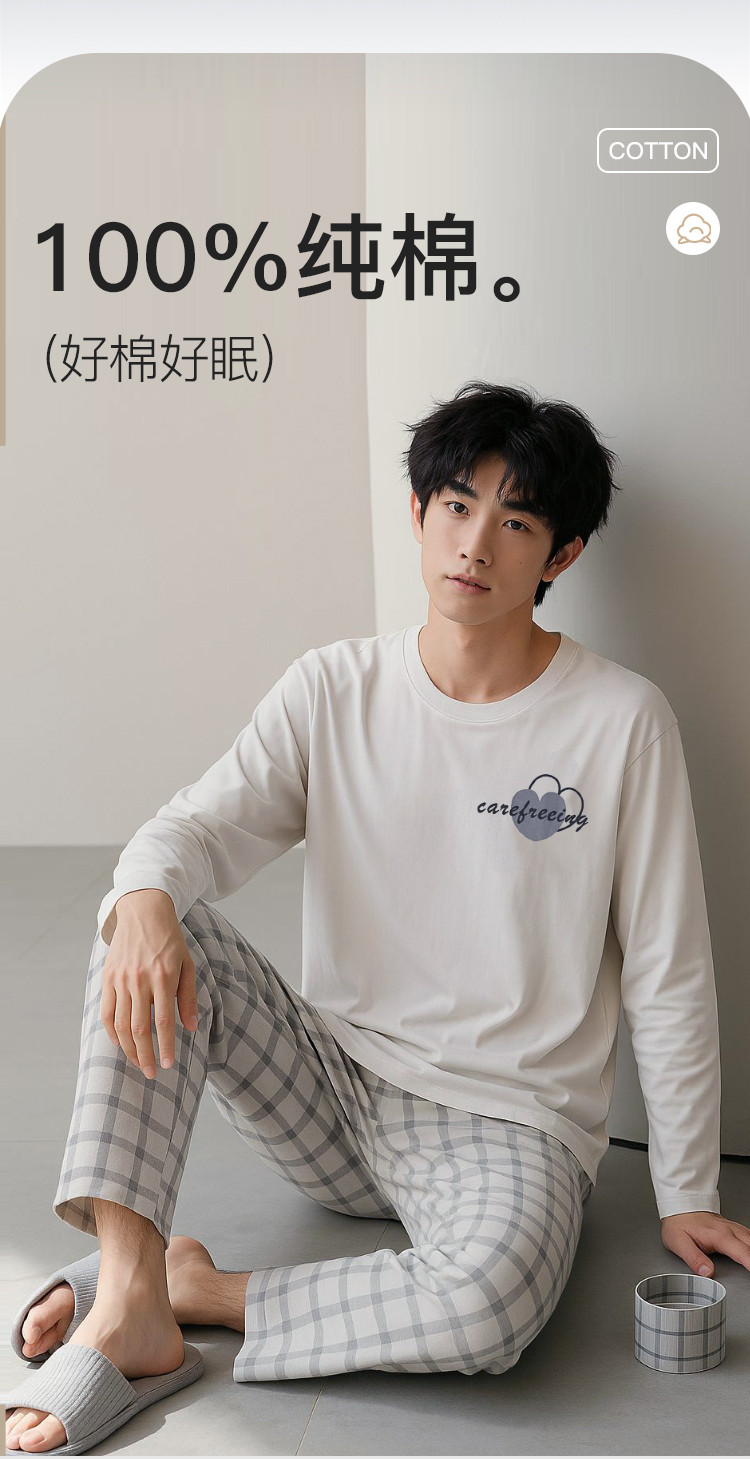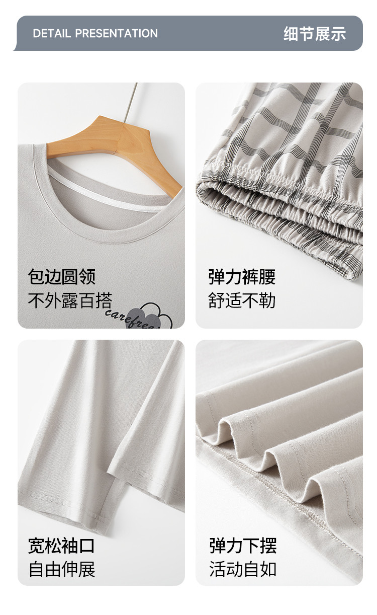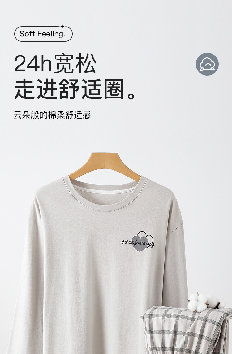 商品名称:【100%棉】男士纯棉睡衣春秋长袖圆领可外穿两件套家居服睡衣 417611