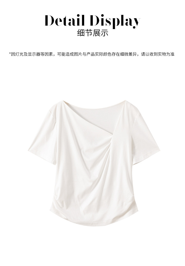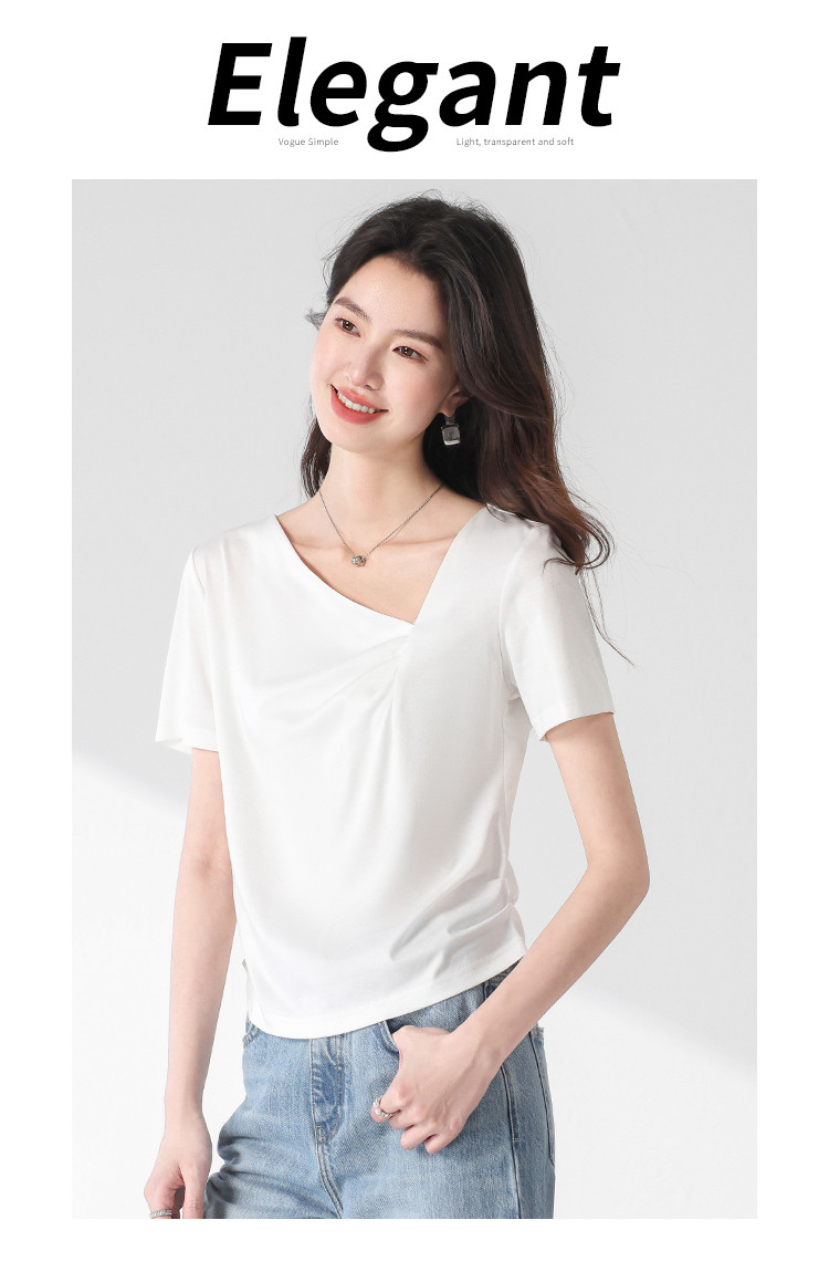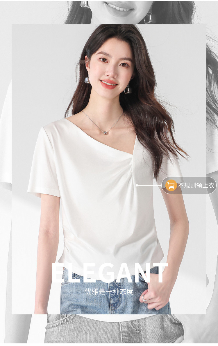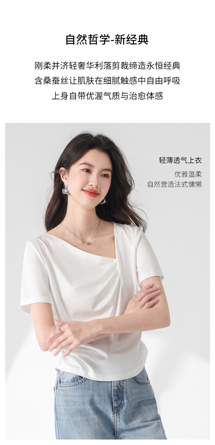 商品名称:【含桑蚕丝】夏装不规则领纯色短袖T恤女设计感简约上衣 222547