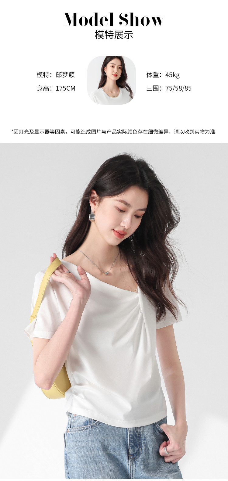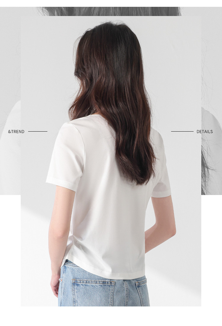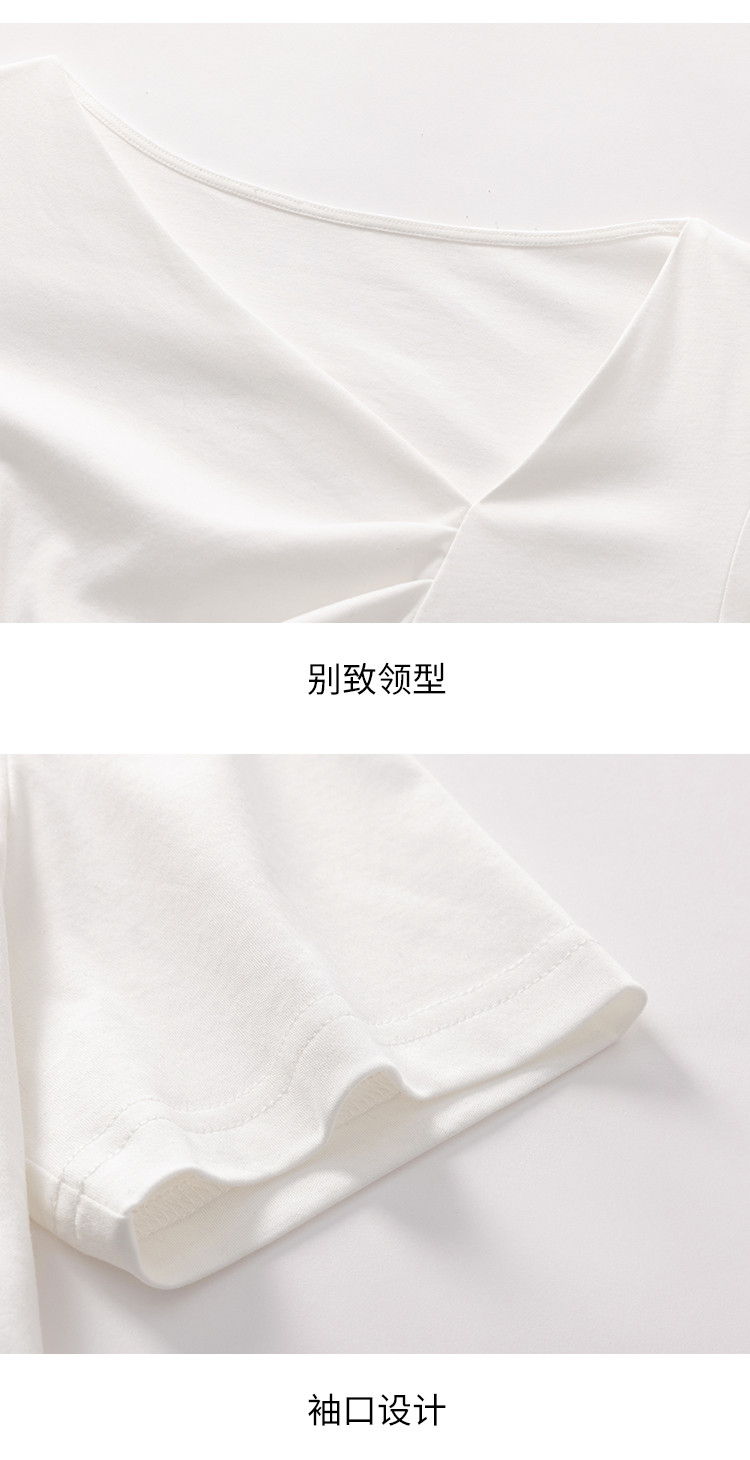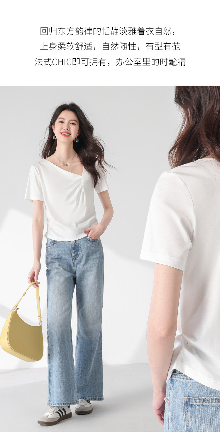 商品名称:【含桑蚕丝】夏装不规则领纯色短袖T恤女设计感简约上衣 222547