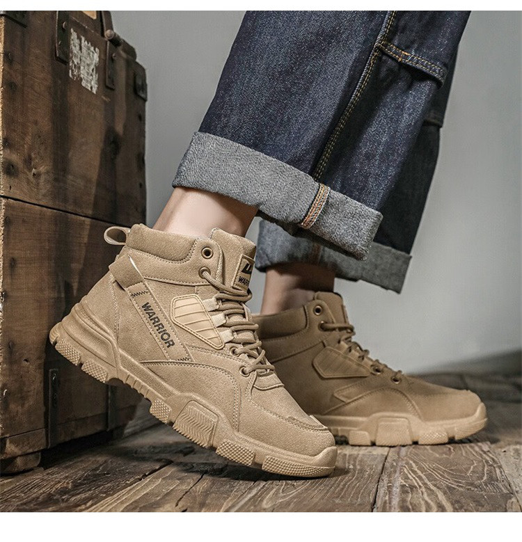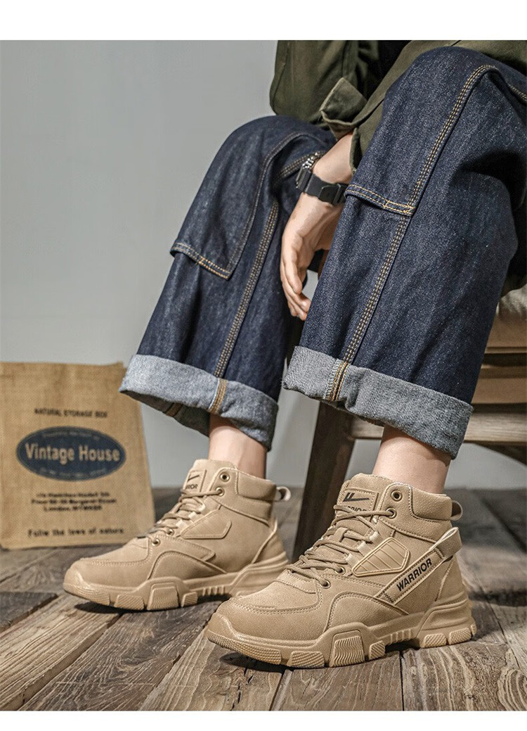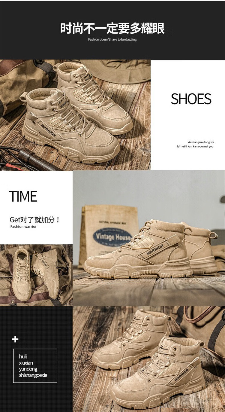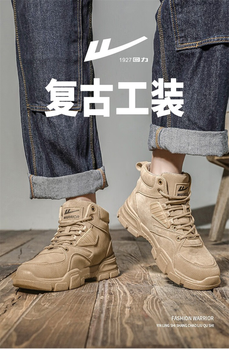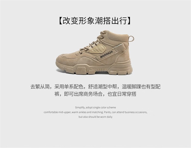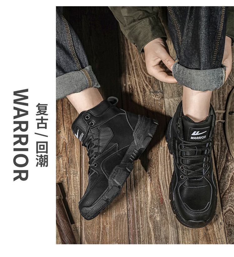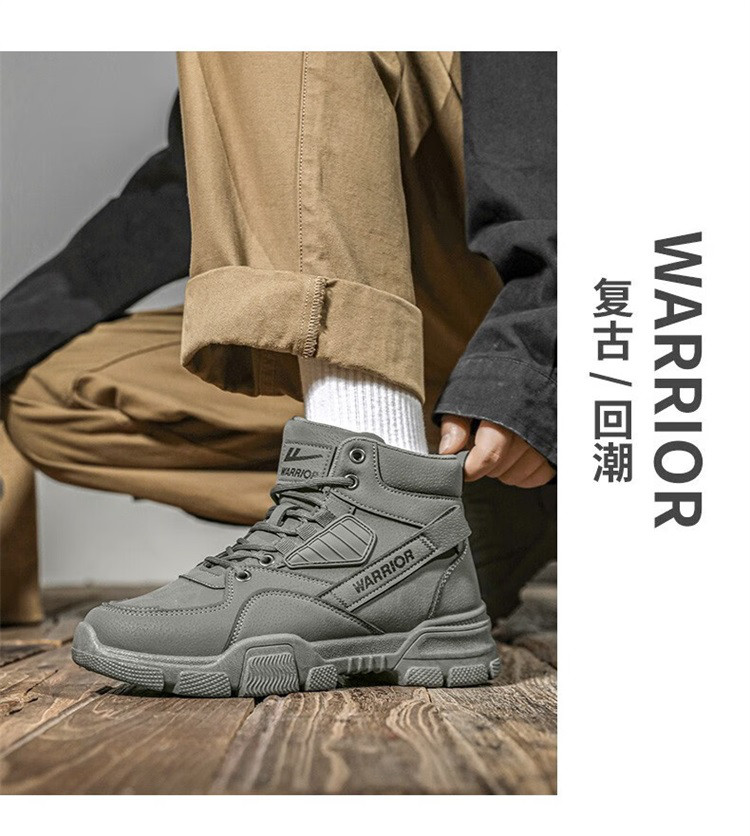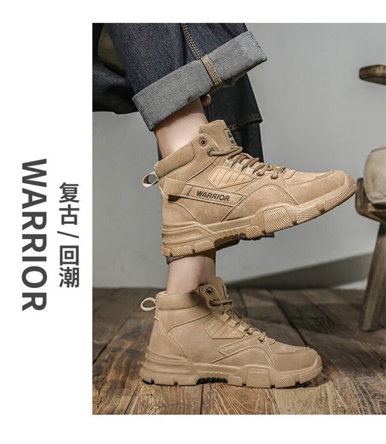 商品名称:短靴男款秋冬户外作战靴复古工装靴保暖登山靴高帮鞋子男款 354693