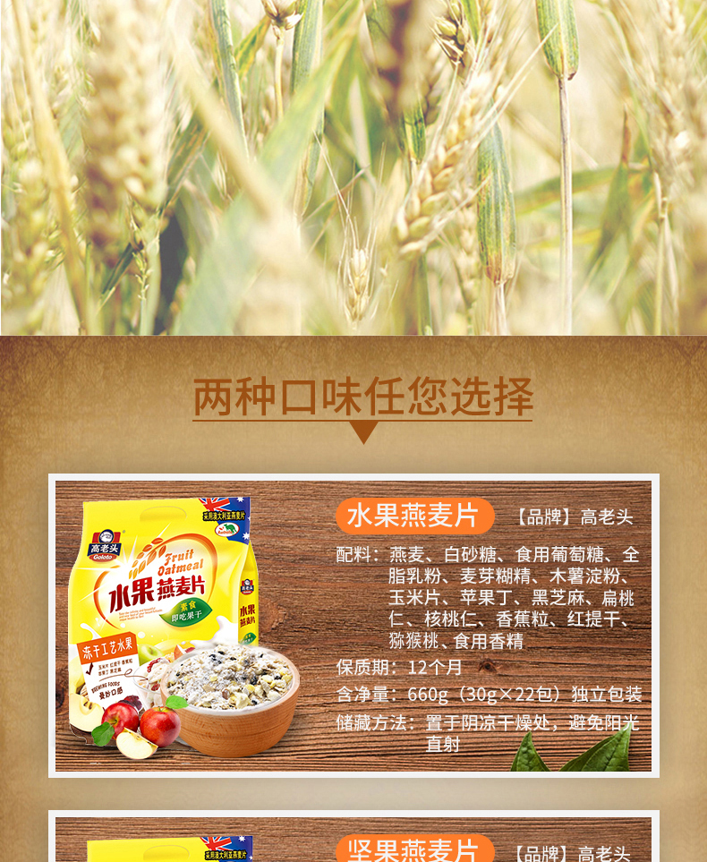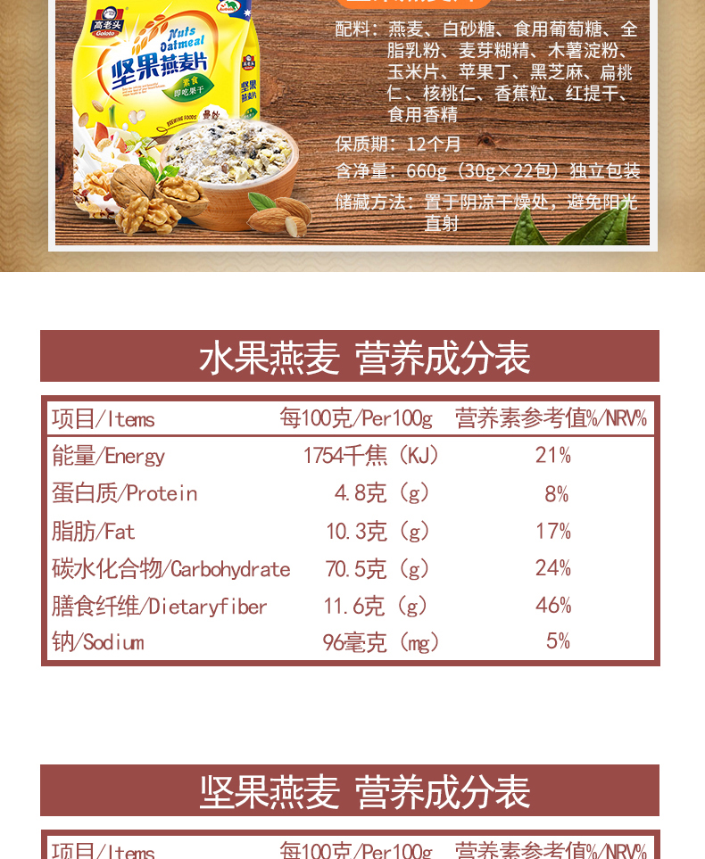 商品名称:高老头 澳洲水果燕麦片 坚果燕麦片660g(内含22小包)